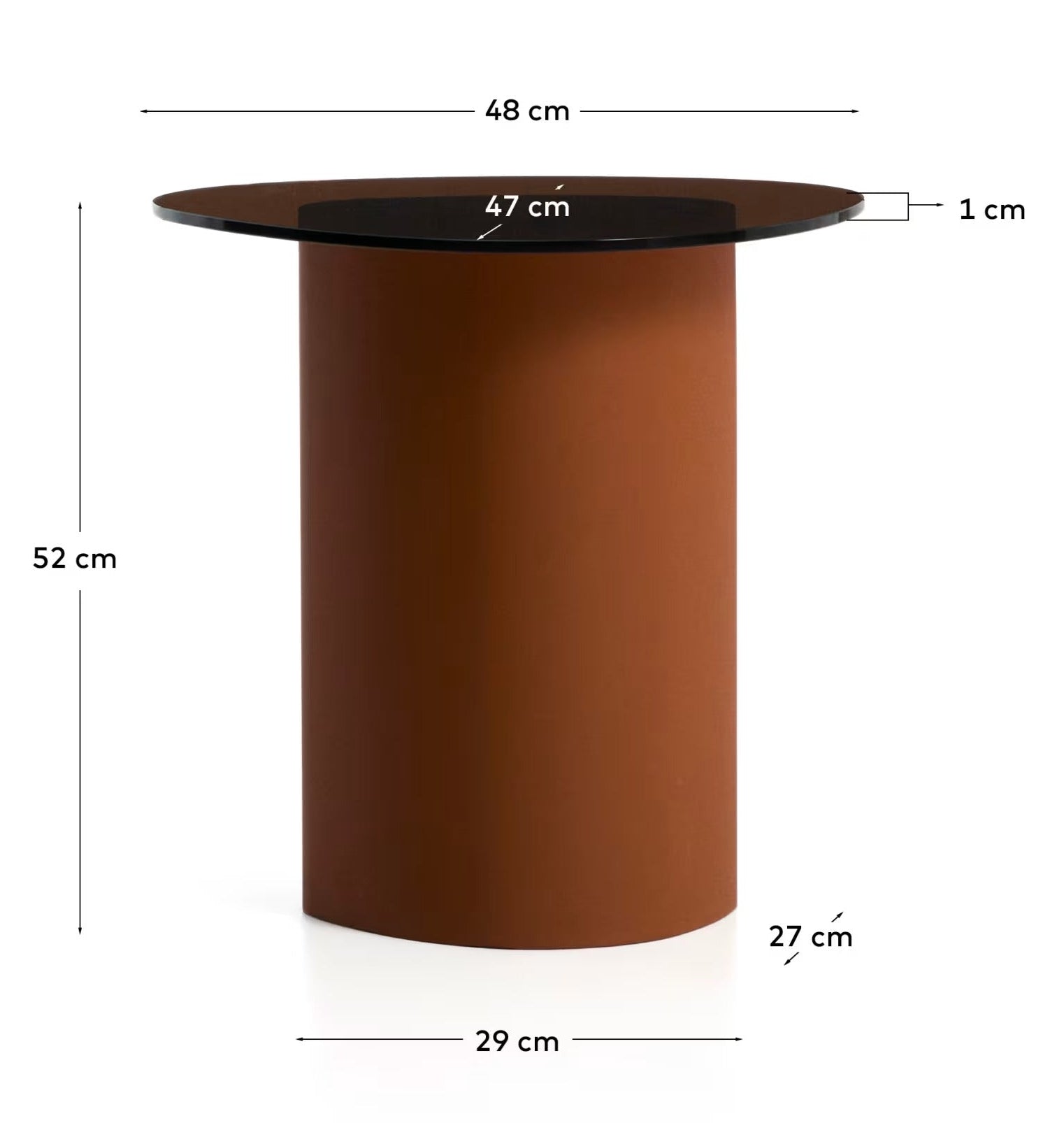 Beistelltisch OLIR mit Glasplatte und braunem Gestell