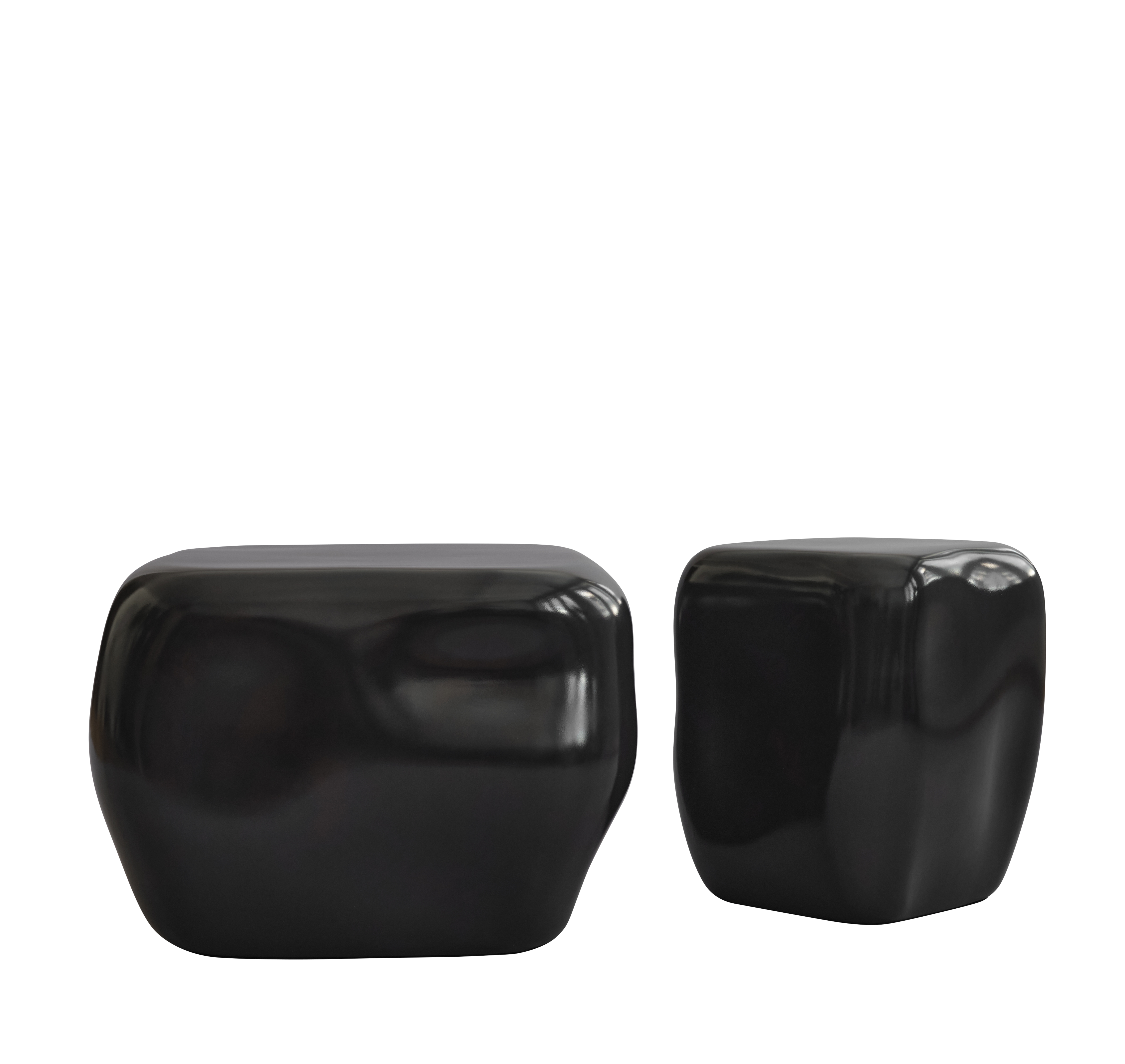 Verfügbar in zwei Größen, kann Ishi als Kaffeetisch, zentraler Punkt des Wohnzimmers oder als Set mit variierender Höhe fungieren. Die Beschichtung in hochglänzender keramischer Glasur in einem dunklen Kaffeeton verstärkt seine Mystik und verleiht ihm Tiefe. Jedes Exemplar wird von Hand gefertigt, weshalb es sich in den Oberflächendetails unterscheidet, was seine Einzigartigkeit unterstreicht und jedem Raum einen individuellen Rhythmus verleiht.