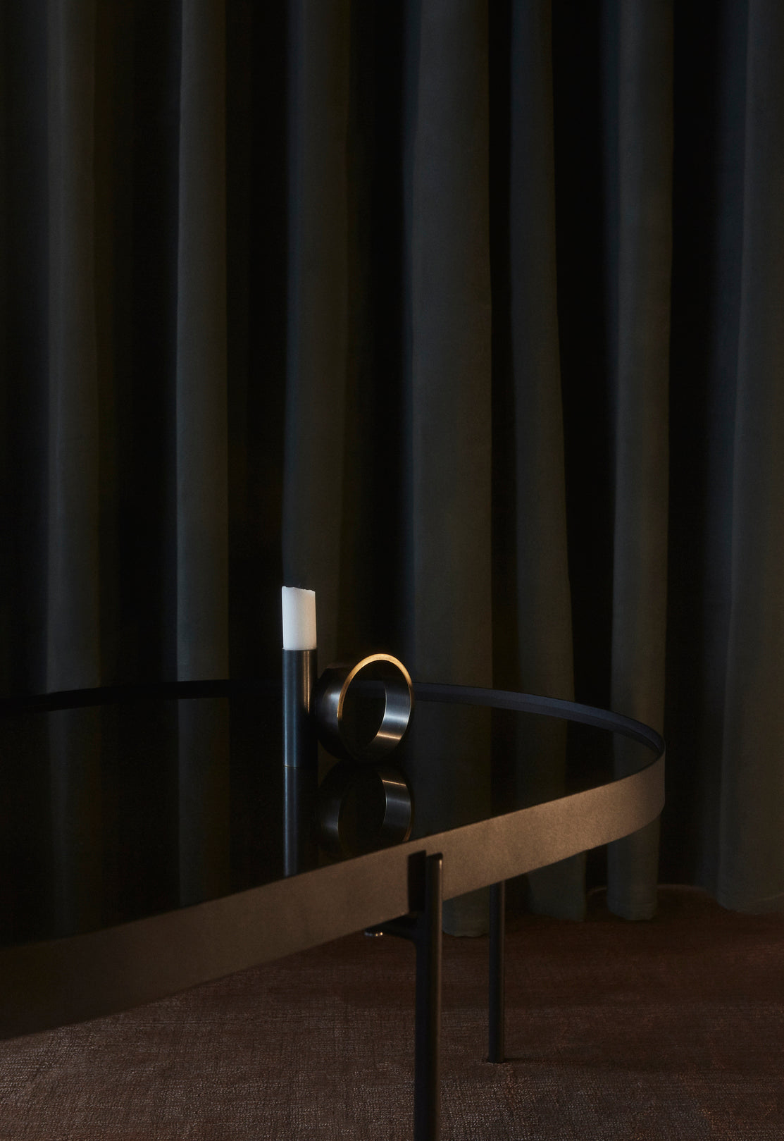 Couchtisch NONO beige Glas mit schwarzem Gestell