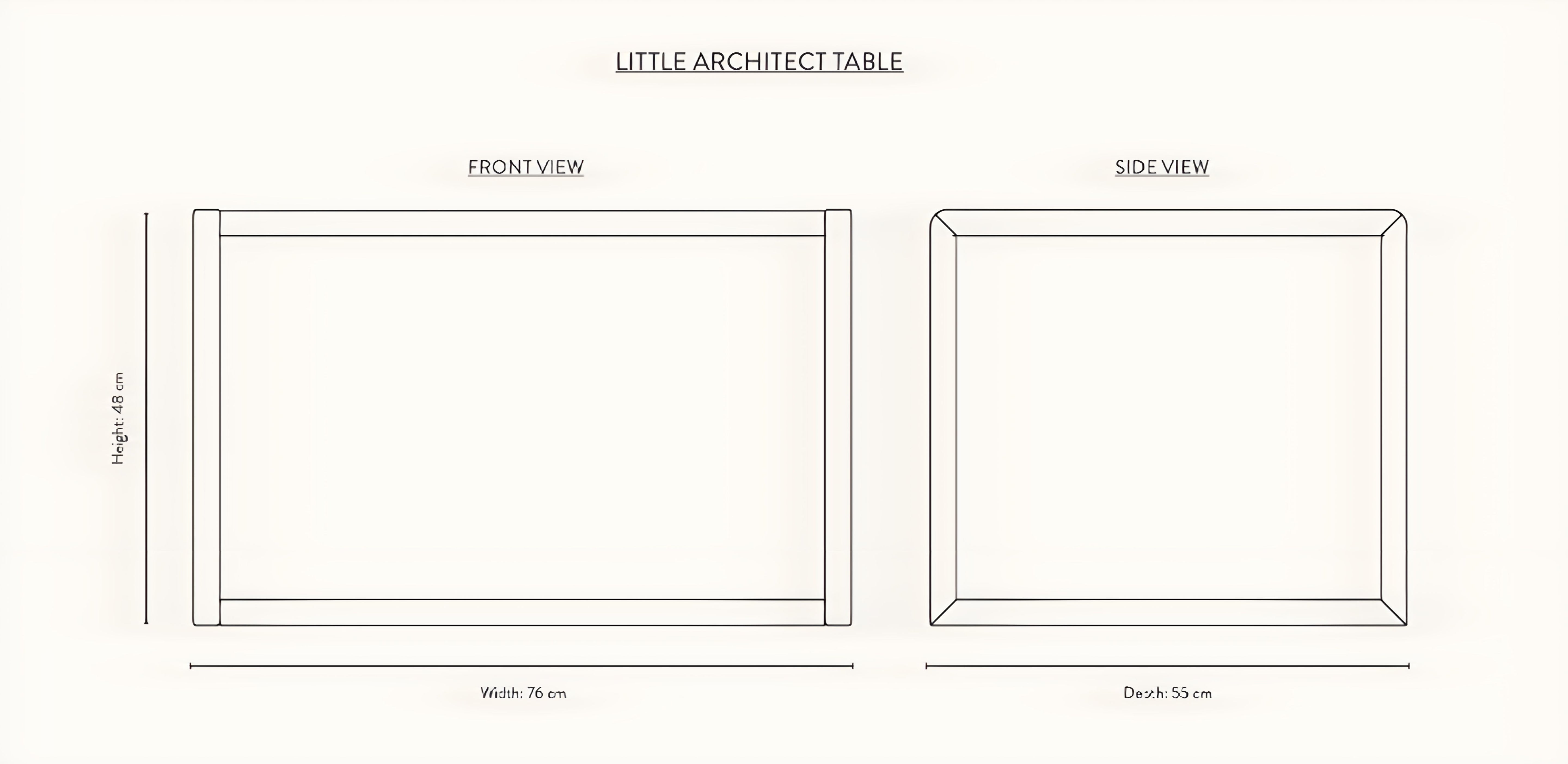 Der Tisch „Little Architect“ ist nicht nur funktional, sondern auch einzigartig im Design und bringt Wärme und Spaß ins Kinderzimmer. Hergestellt aus massivem Eschenholz und Eschensperrholz, ist er sicher und langlebig, und seine kompakten Abmessungen eignen sich ideal für kleinere Räume. Das Produkt wird als Selbstmontagepaket geliefert und entspricht den europäischen Sicherheitsnormen (EN12521).