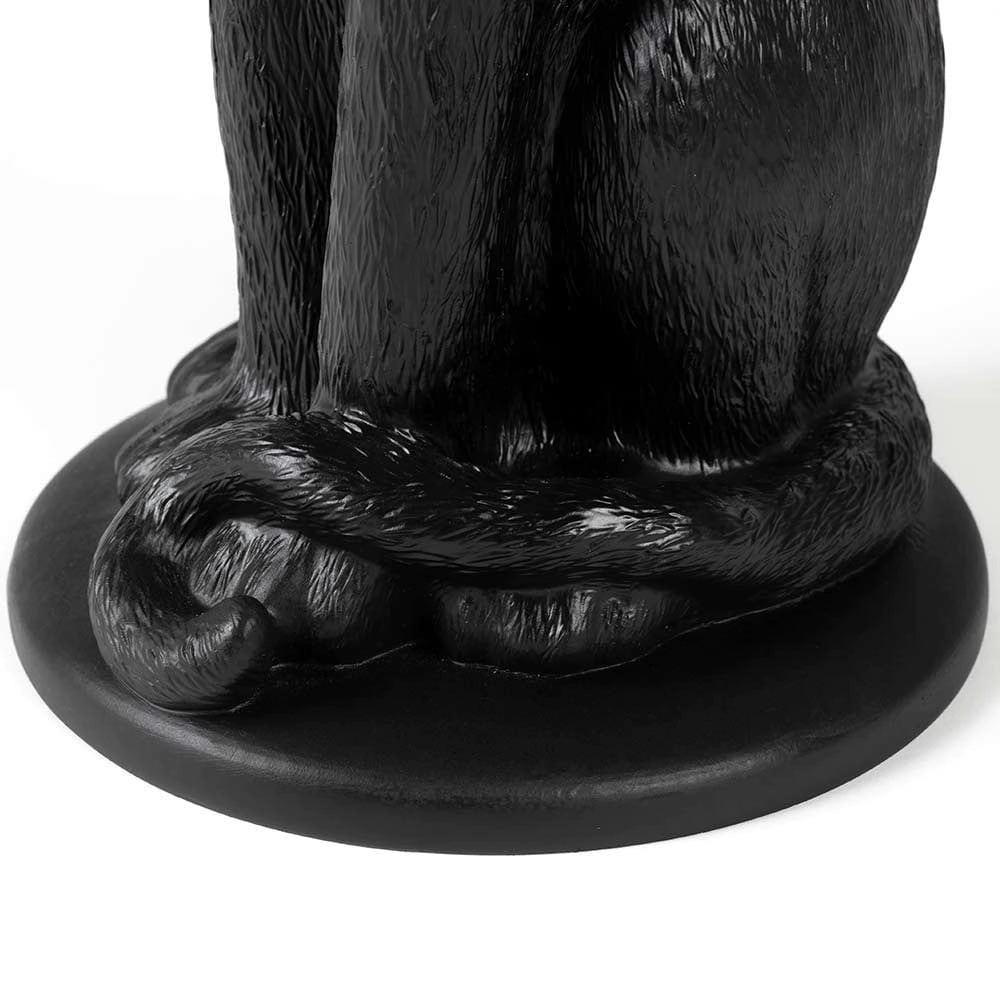 Wenn Sie Katzen wie uns lieben, wird dieser schwarze Leopard Ihr Herz stehlen! Couchtisch Mit einer Basis in Form eines großen Murmelns wurde es mit einer goldenen Kette dekoriert, die sich elegant vom schwarzen Körper abhebt. Der stolze Leopard, der das Glasoberteil unterstützt, ist eine ideale Ergänzung für jeden Liebhaber von mutigen und vielseitigen Innenräumen.