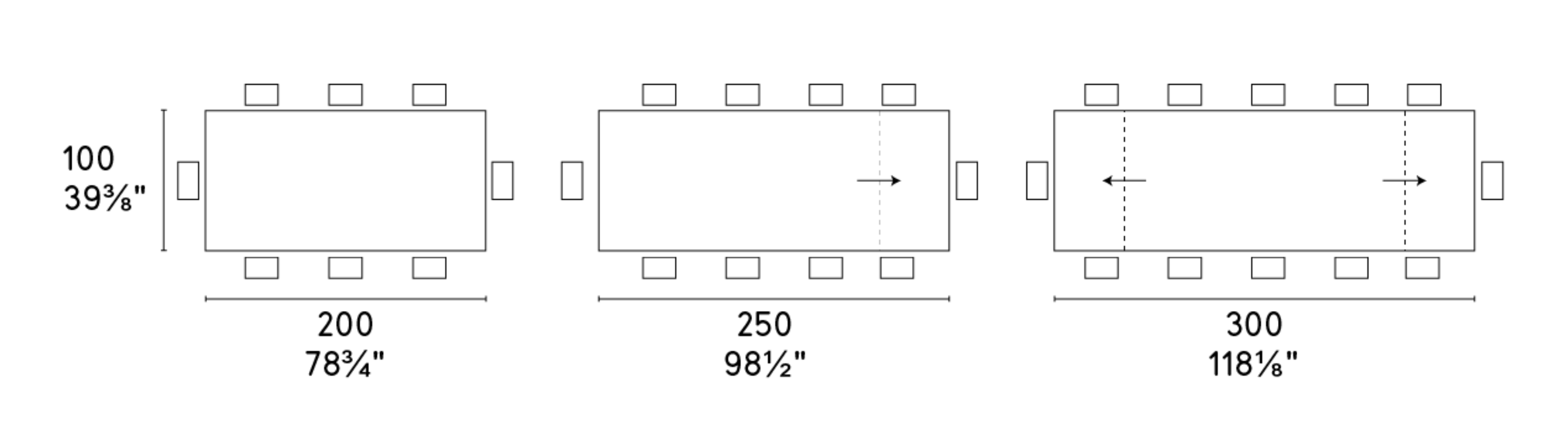 Breite: 200 - 250 - 300 cm