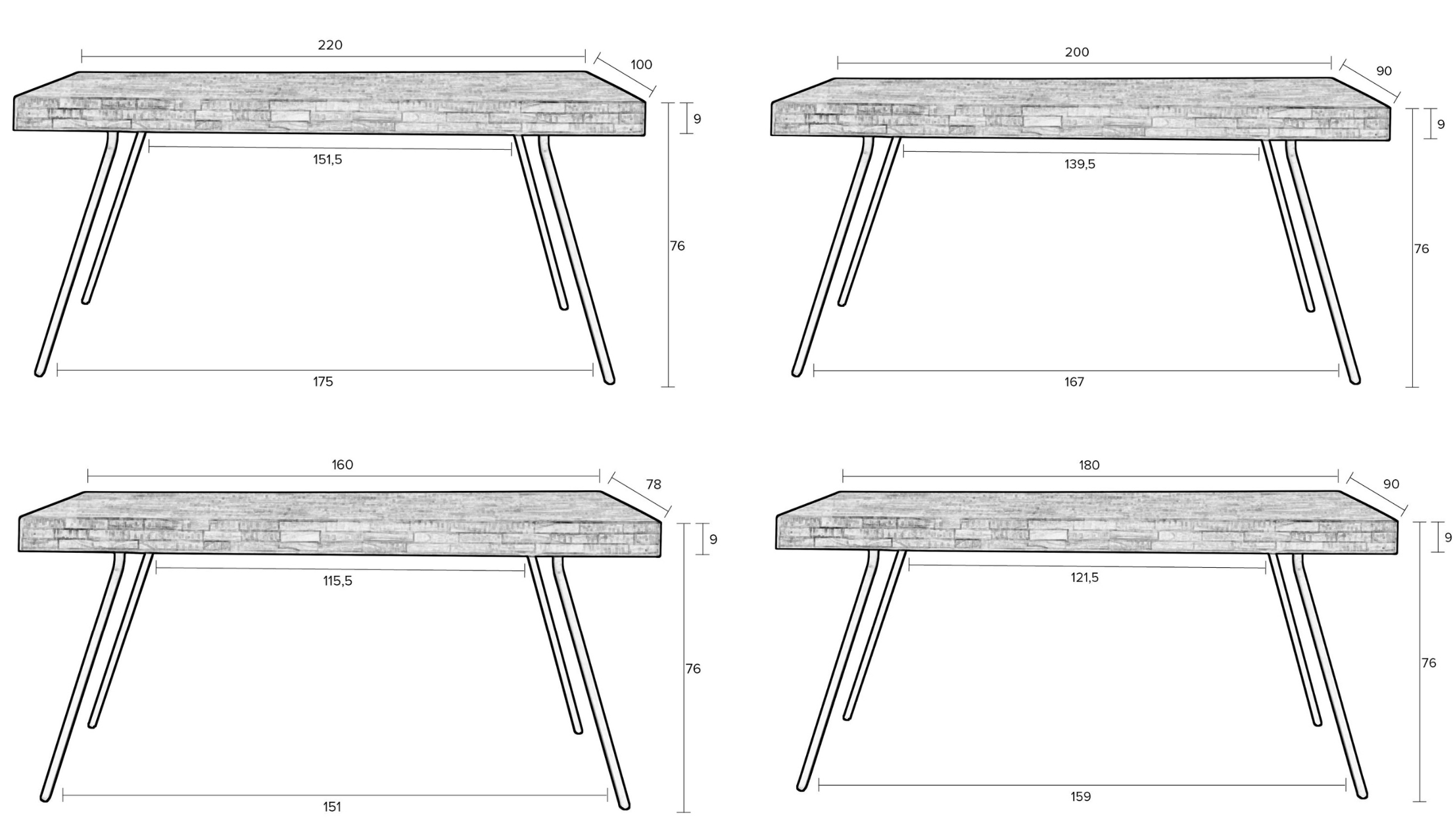 Tisch Suri ist ein Möbelstück, das sofort ins Auge fällt. Das massive, rechteckige Oberteil aus recyceltem Teakholz ist nicht nur ökologisch, sondern auch extrem stilvoll. Der Tischrahmen ist dünn, Stahlbeine, die der Struktur Leichtigkeit verleihen und gleichzeitig seine Stabilität sicherstellen.