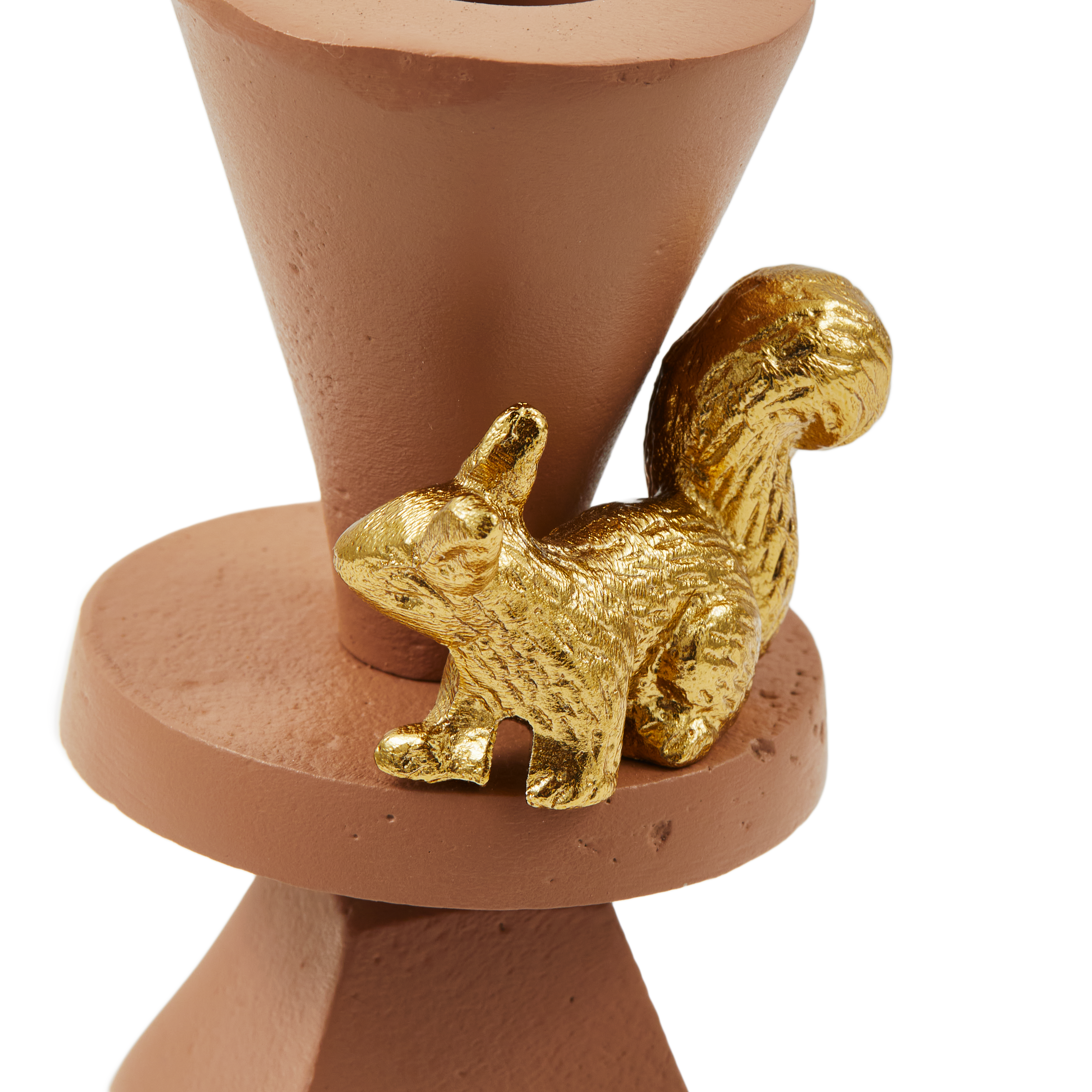Kerzenhalter Climbing Pole ist ein skulpturaler Gegenstand, der minimalistische Form mit poetischen Anspielungen auf die Natur verbindet. Die schlanke, vertikale Silhouette lenkt den Blick nach oben, wo Vögel und Eichhörnchen symbolisch ihren Platz einnehmen, als ob sie die Umgebung aus sicherer Höhe beobachten. Es ist ein subtiler Dialog zwischen Einfachheit und Erzählung, der dem Objekt einen einzigartigen Charakter verleiht.