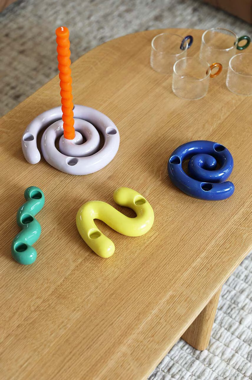 Kerzenhalter Scribble begeistert mit seiner fröhlichen Farbgebung und der sanften, abgerundeten Form, die ihm einen besonders eleganten und leichten Charakter verleiht. Das porzellanartige Finish in Kombination mit der wellenförmigen Gestalt zieht die Blicke an und wird zu einem eindrucksvollen dekorativen Akzent im Wohnzimmer, Esszimmer oder Schlafzimmer.
