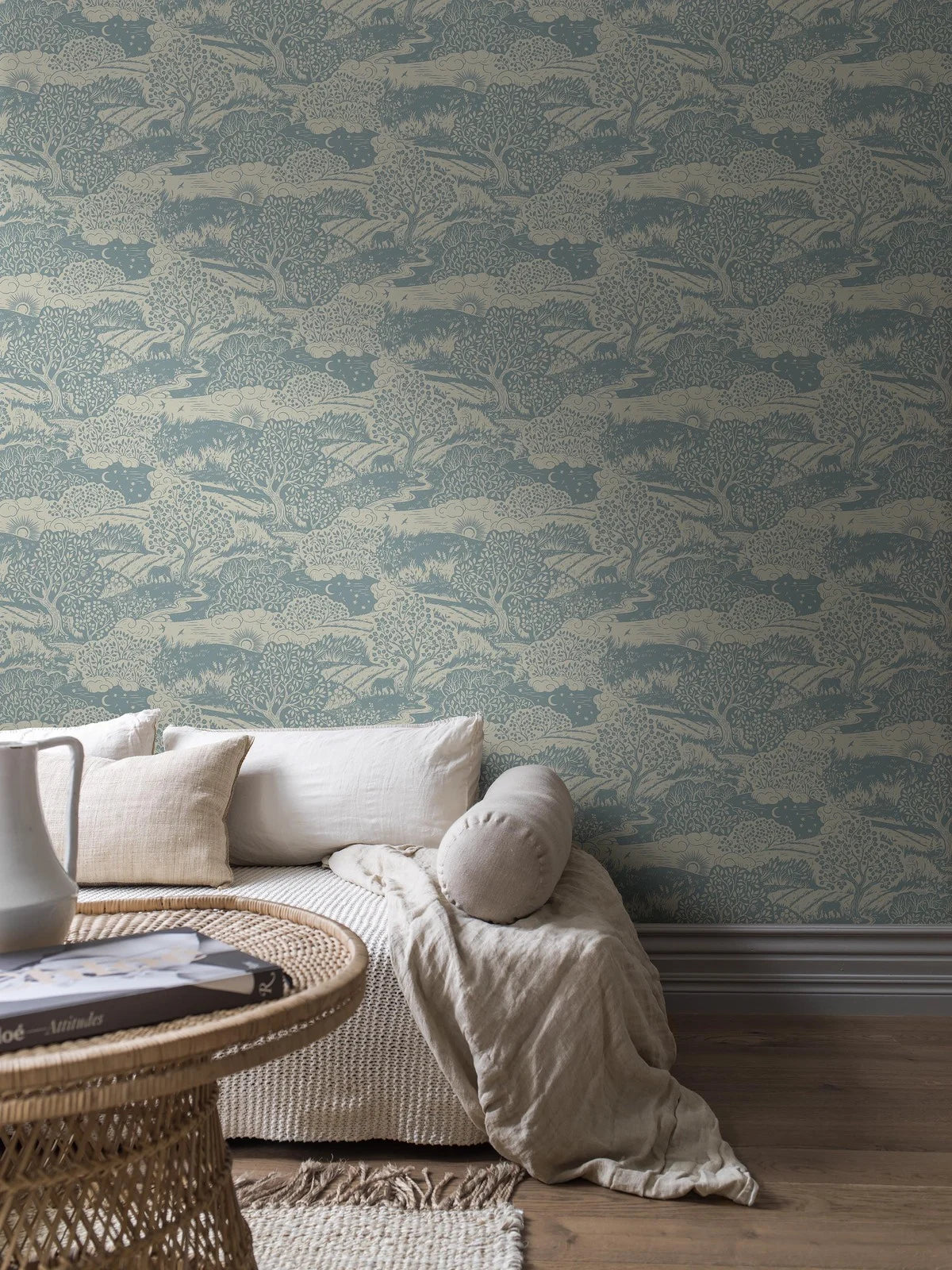 Kinder-Tapete mit Landschaft SOLANGEN blau-beige