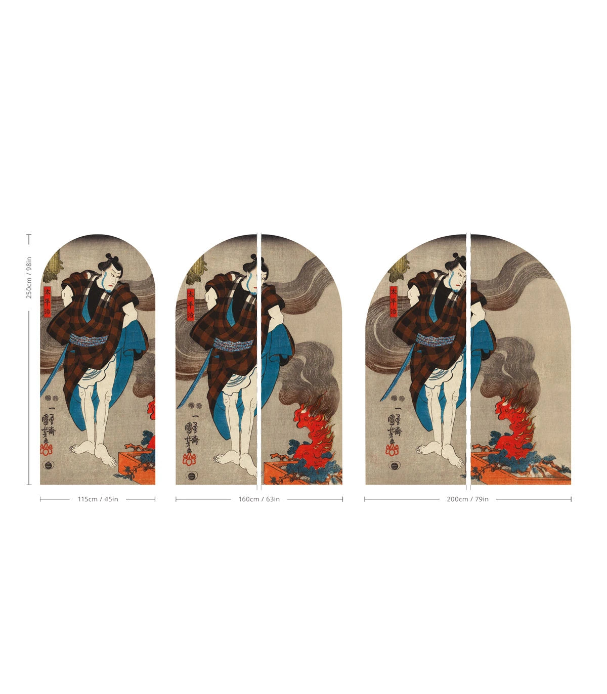 Die Bogen-Tapete Samurai Serenity ist eine Wanddekoration, die Harmonie, Ruhe und raffinierte Ästhetik in den Raum bringt. Das von der japanischen Kultur inspirierte Porträt eines Samurai, vor dem Hintergrund sanfter, gedämpfter Farben, schafft eine Komposition voller Balance und Kontemplation. Die zarte Form des Bogens betont den minimalistischen Charakter des Designs und verleiht ihm Leichtigkeit und Eleganz.