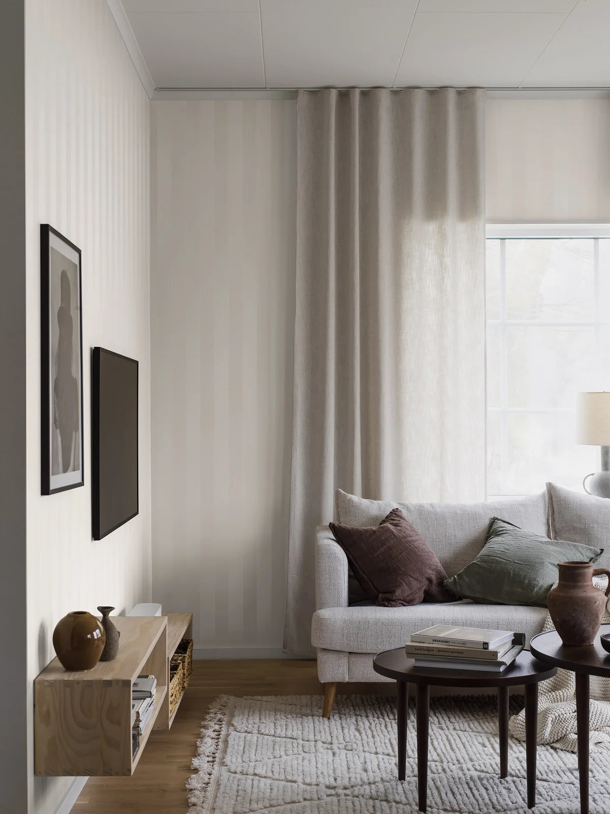 Vlies-Tapete mit Streifen KARL in Weiß mit pudrigem Rosa