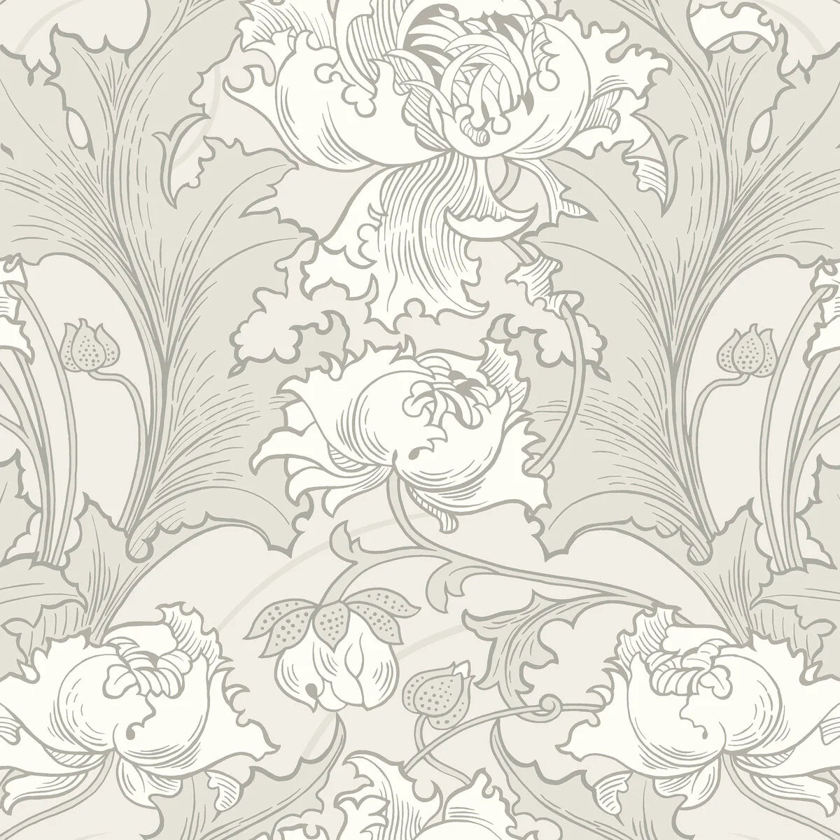 Vlies-Tapete mit pflanzlichem Muster SIRI perlgrau mit Creme