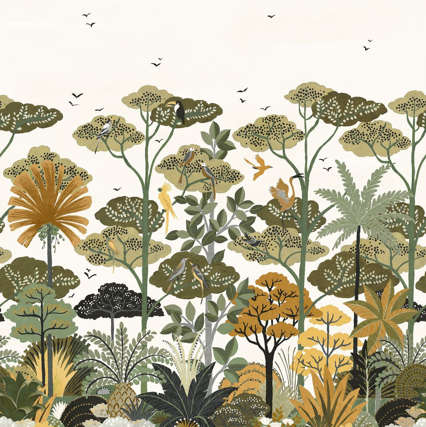Wandmural mit pflanzlichem Motiv von KANDY - BLANC/KAKI weiß mit khaki
