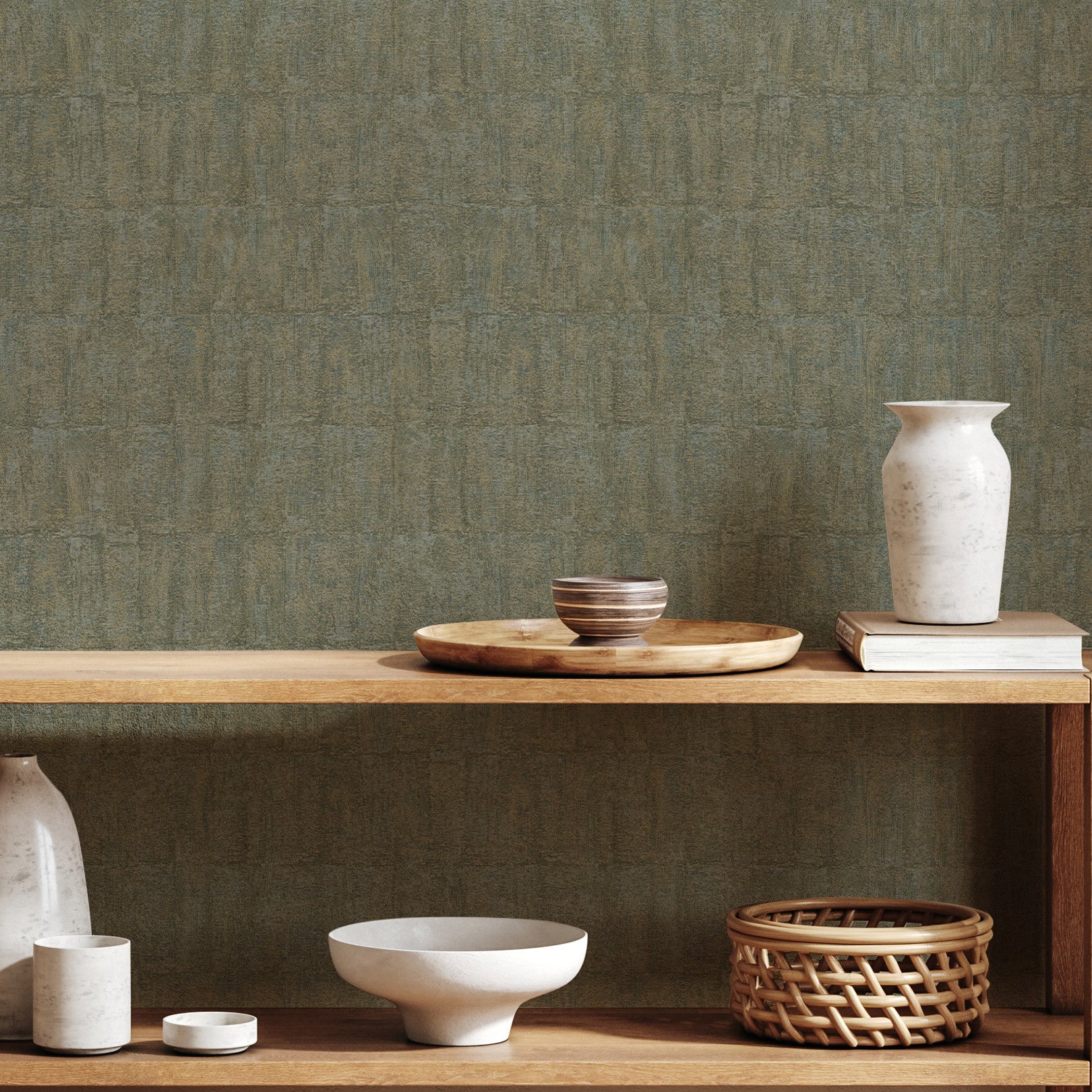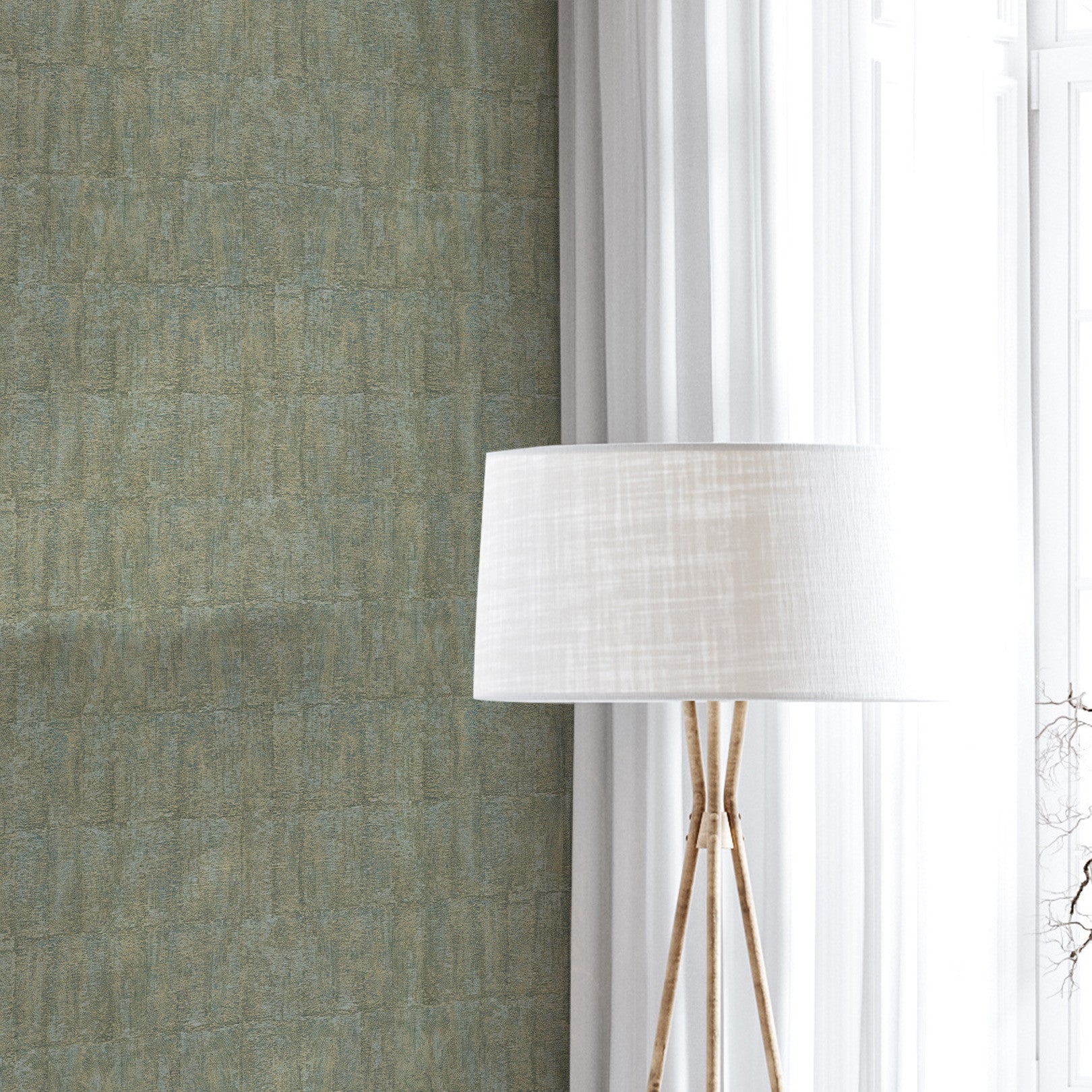 Strukturierte Tapete, die abgewetztes Leinen imitiert JOHARA - LICHEN grün