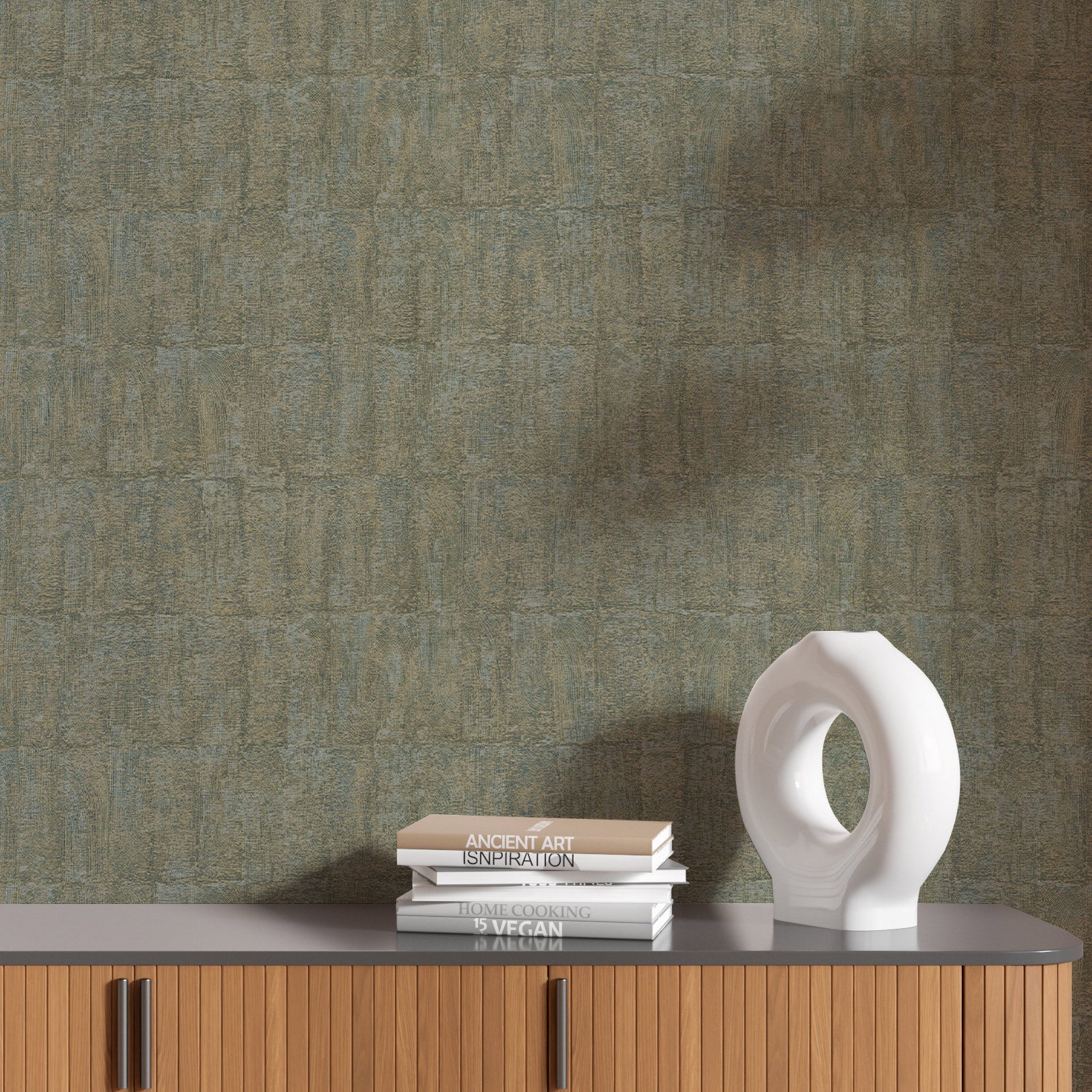 Strukturtapete, die Ton imitiert BIZEN - LICHEN grün mit Bronze