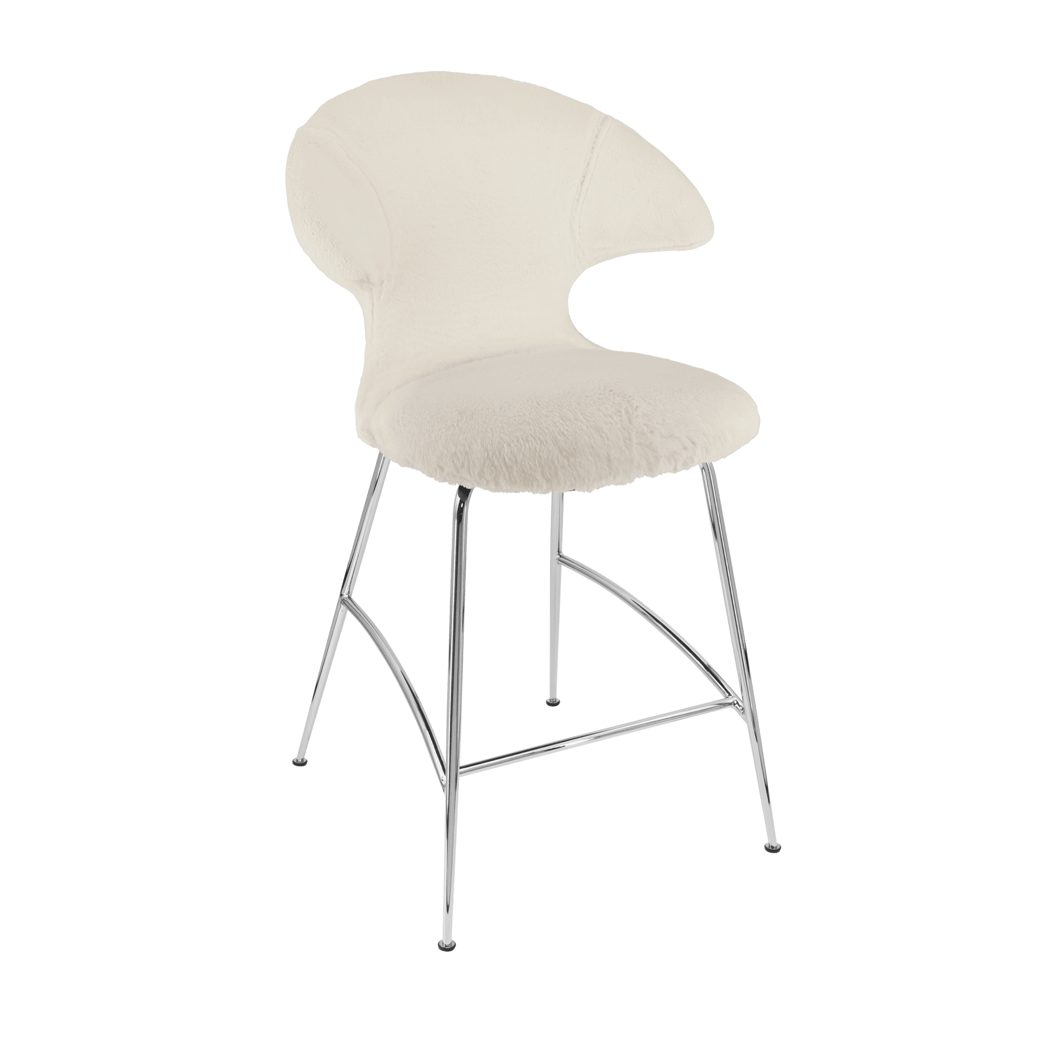 Time Flies Bar Stuhl Creme Plüsch mit einer silbernen Basis