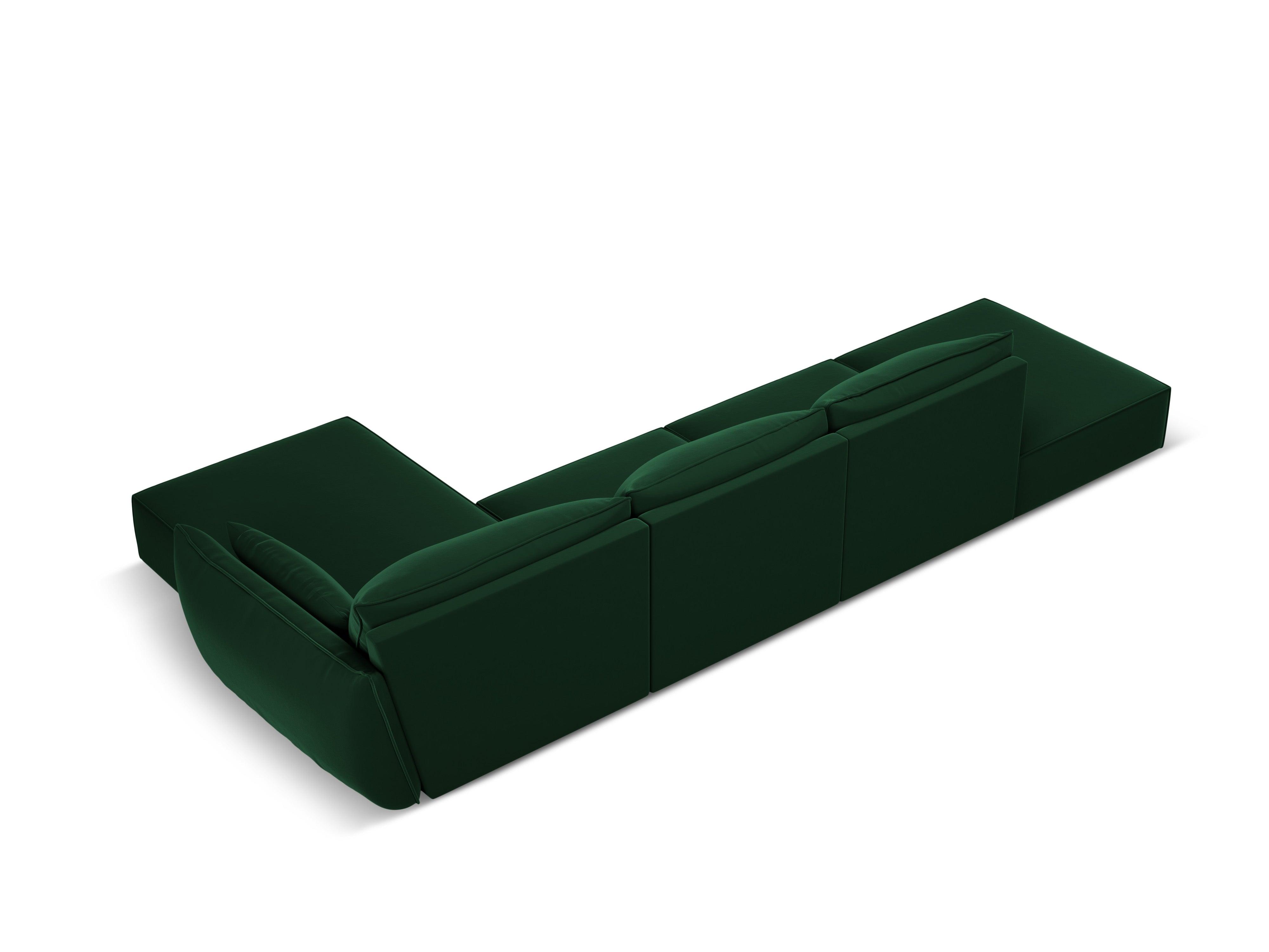 Die Ecke mit Samtpolster ist nicht nur wirksam, sondern auch langlebig. Es wird im Sitzen angemessene Unterstützung in jeder Position bieten. Die gesamte Struktur basiert auf niedrigen, festen Beinen, was den Eindruck des Schwebens über dem Boden erzeugt. Wenn Sie nach Harmonie in einem guten Stil suchen Ecke Vanda wird eine ideale Ergänzung zu Ihrem Zuhause sein.