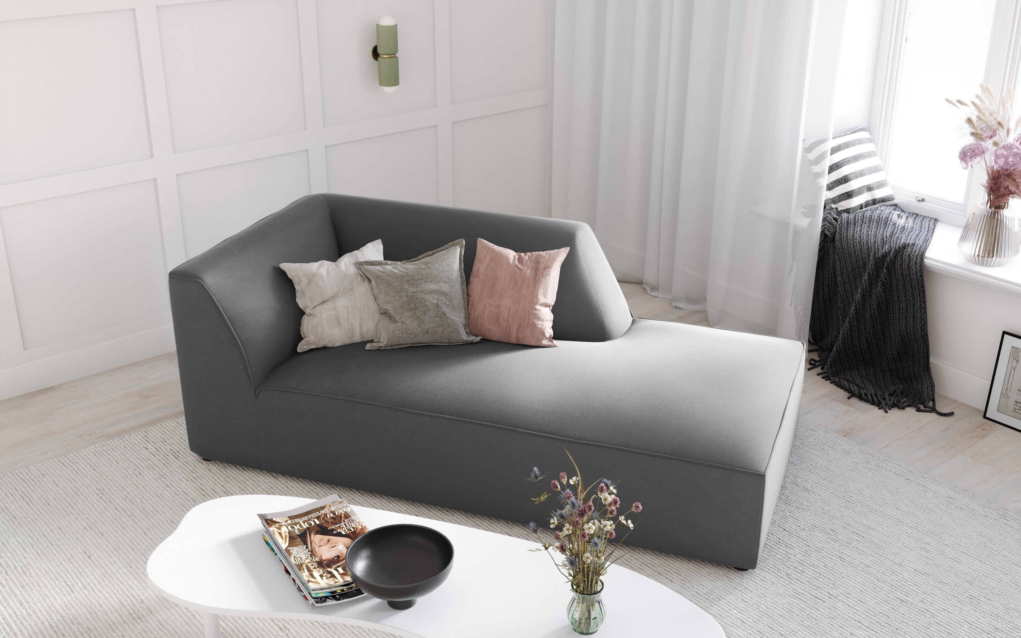 Szezlong aksamitny prawostronny RUBY szary Micadoni    Eye on Design