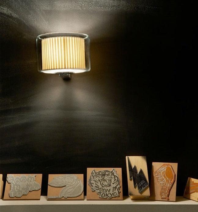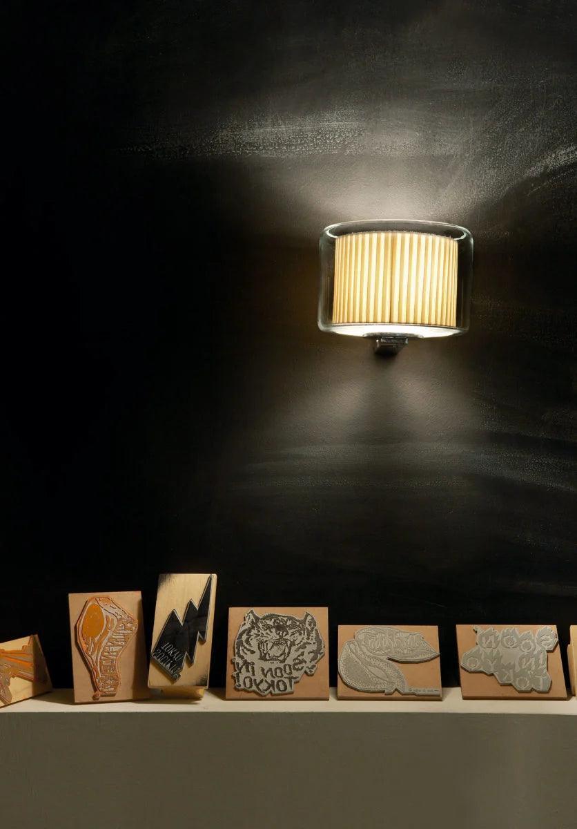 Der interne Diffusor-Stoff ist in zwei Oberflächen erhältlich: ein Band aus plissierter weißer Baumwolle und einer moderneren und minimalistischeren Version von Perlhit-Weiß-Textilen.