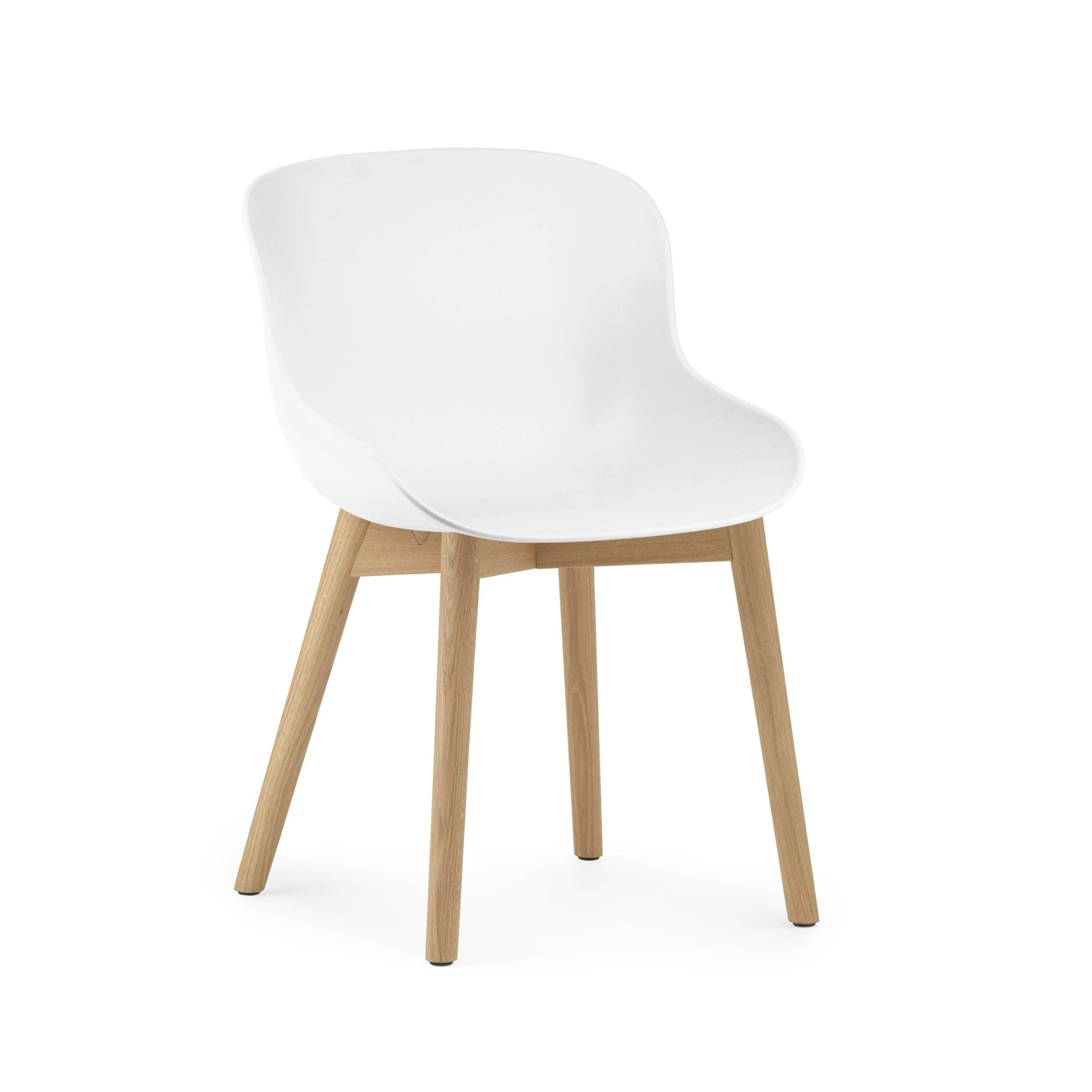 Weißer Hyg -Stuhl mit einer natürlichen Eichenbasis