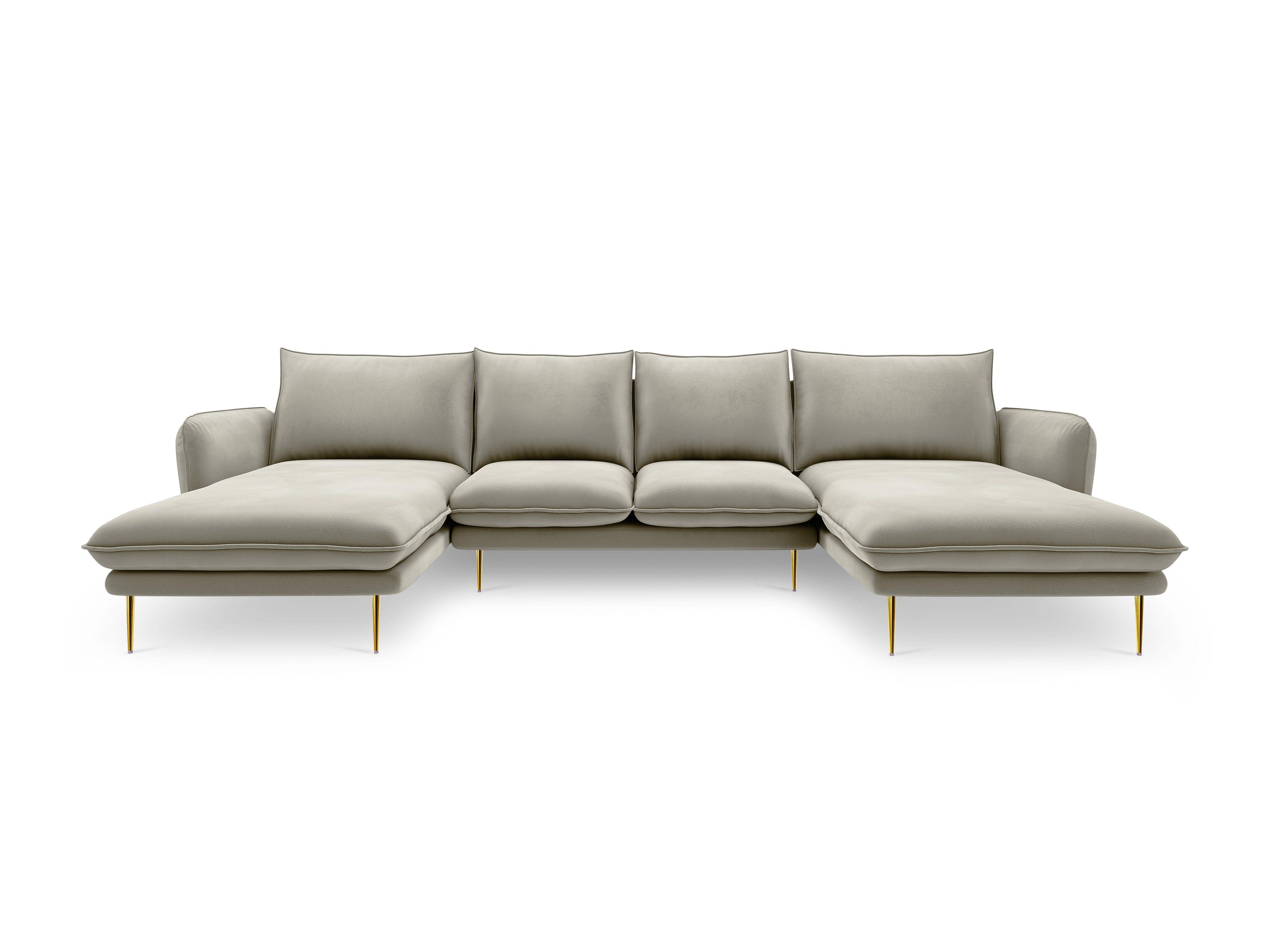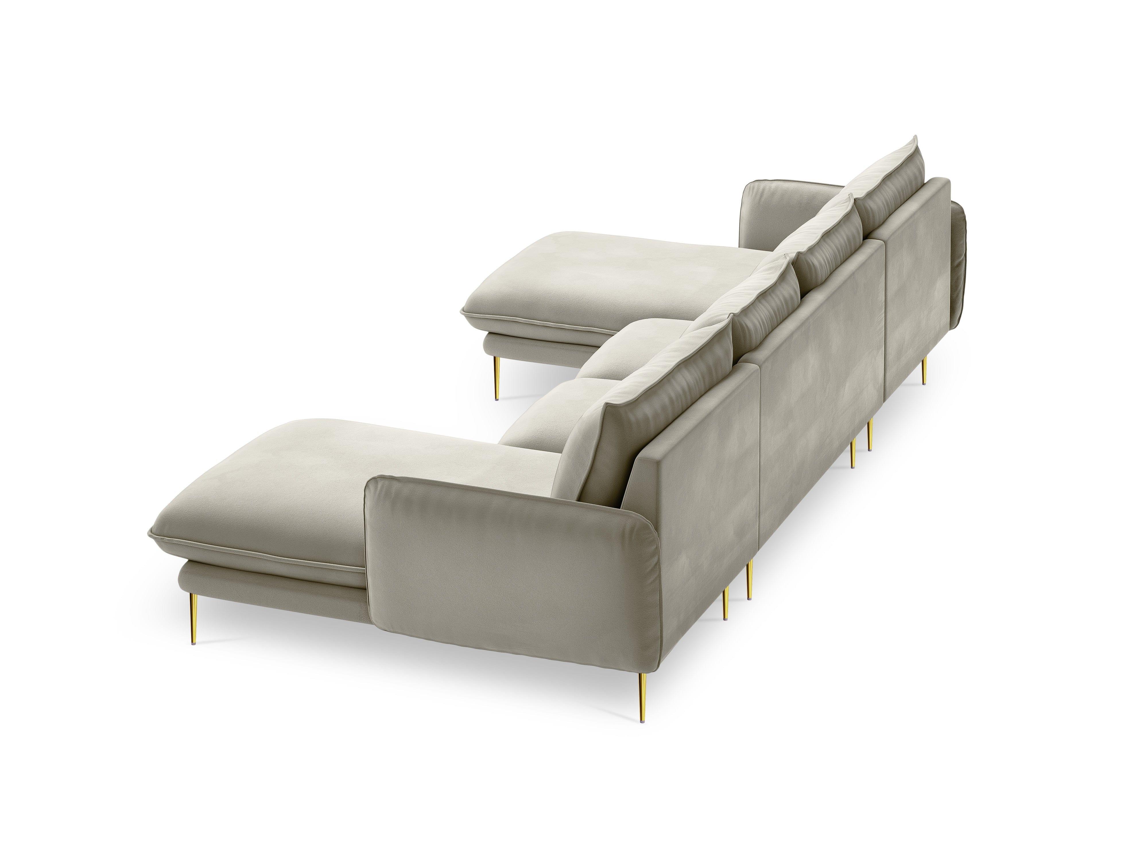 Narożnik aksamitny w kształcie U VIENNA beżowy ze złotą podstawą Cosmopolitan Design    Eye on Design
