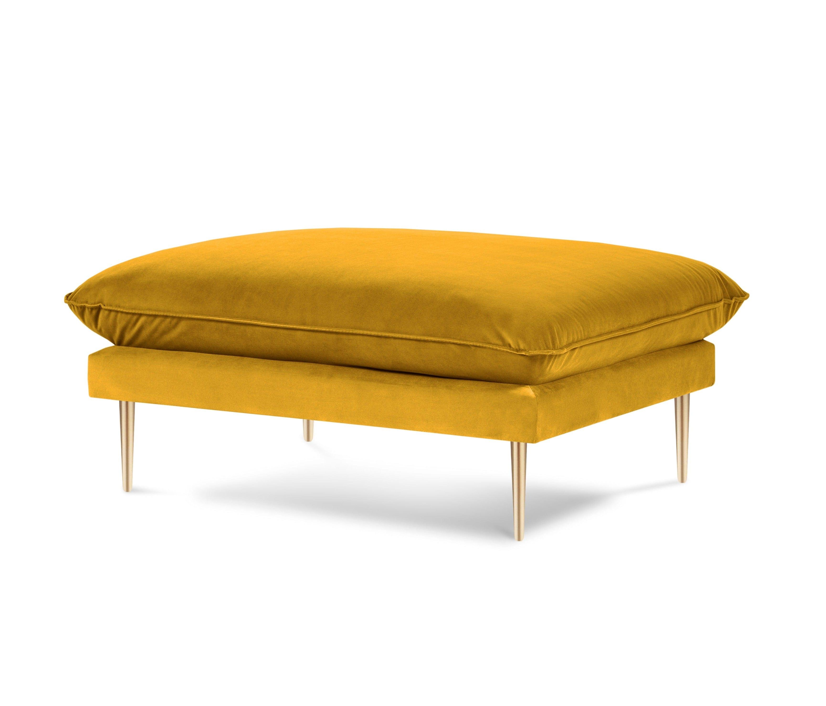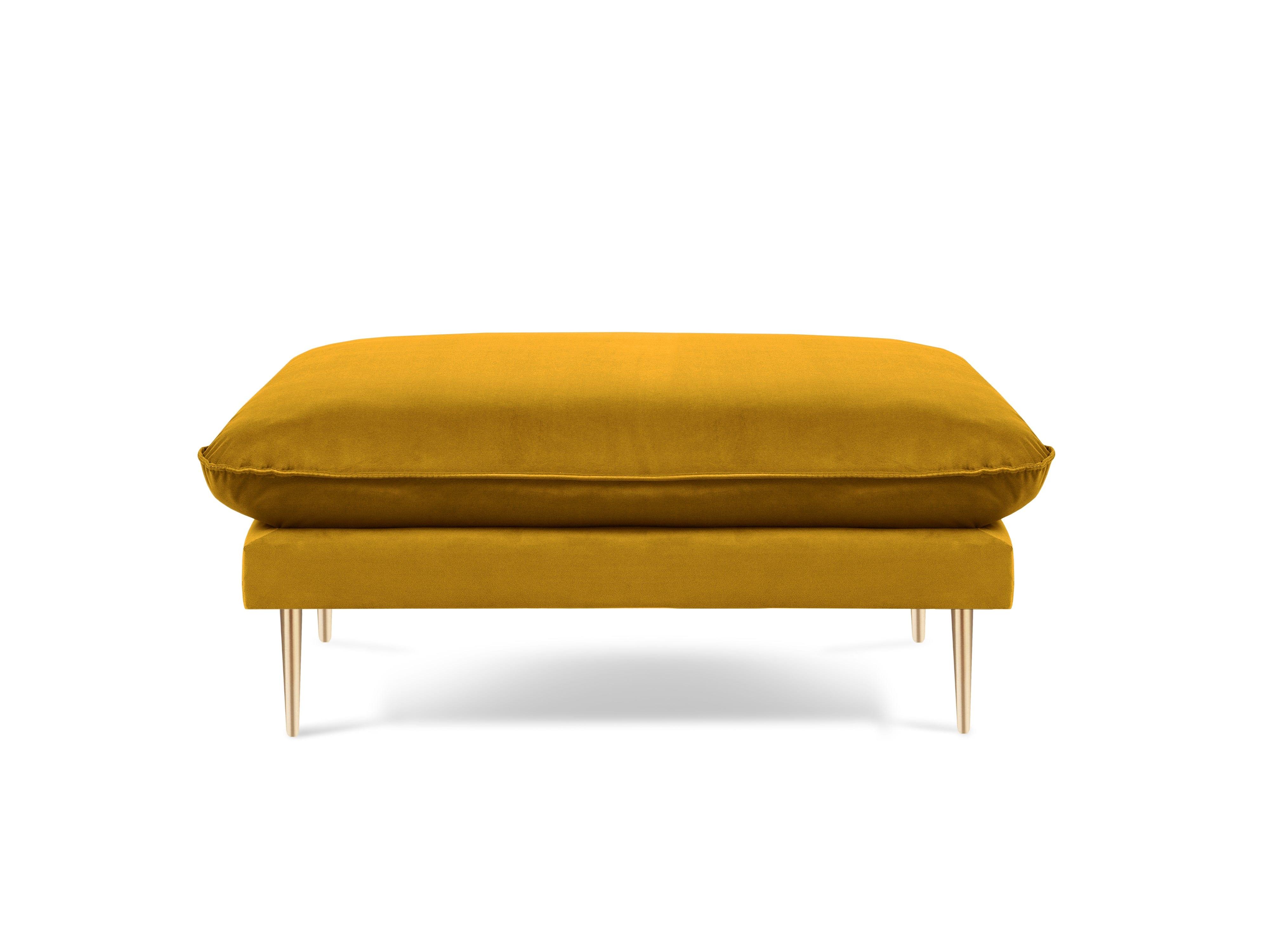 Wiener gelber Samtpouf mit einer goldenen Basis