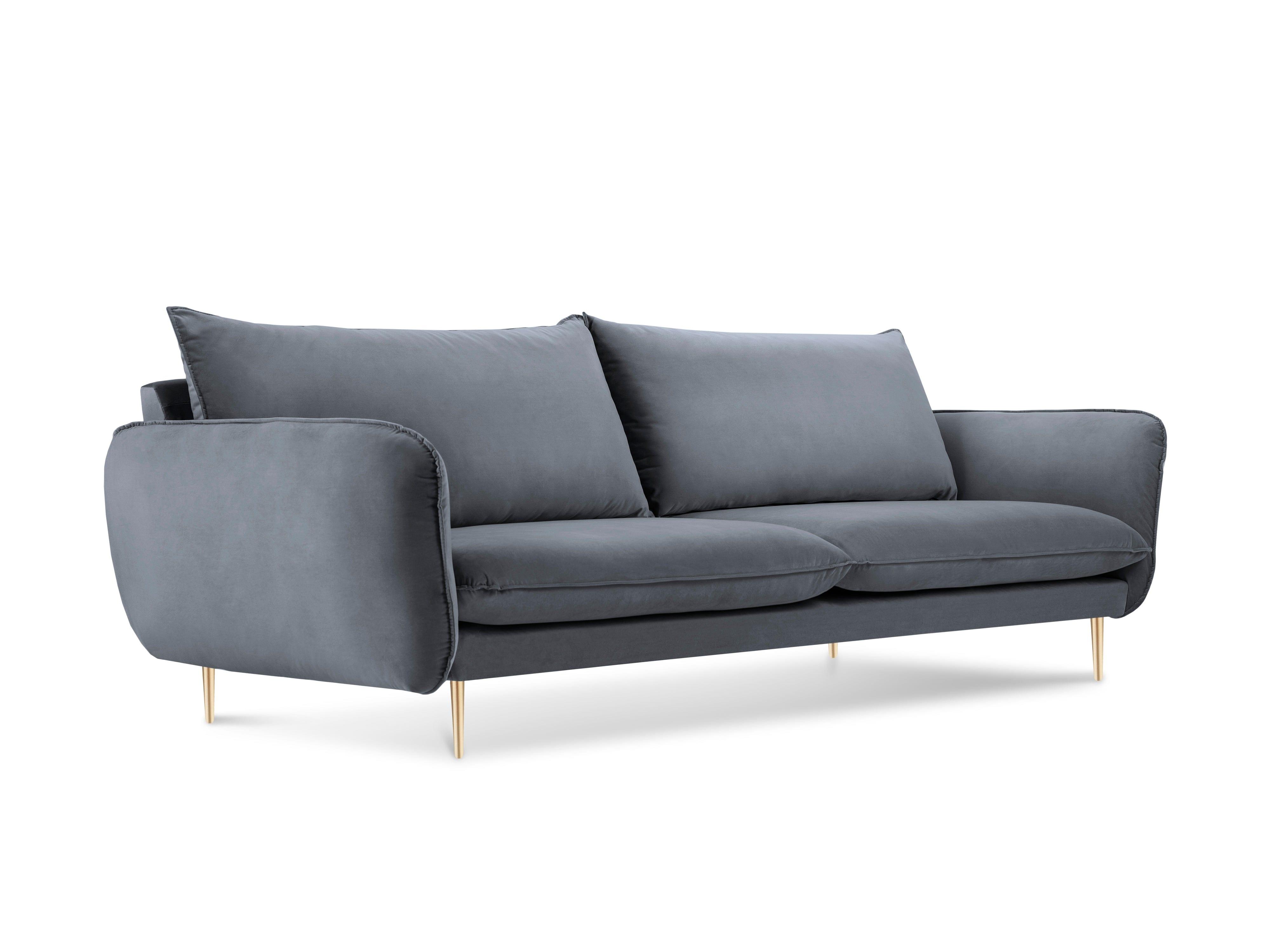 Sofa aksamitna 4-osobowa VIENNA szary ze złotą podstawą Cosmopolitan Design    Eye on Design