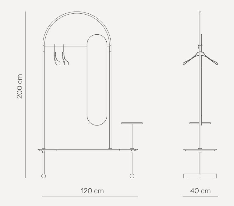 Wandgarderobe mit Spiegel ARCO Nussbaumholz mit schwarzer Oberfläche