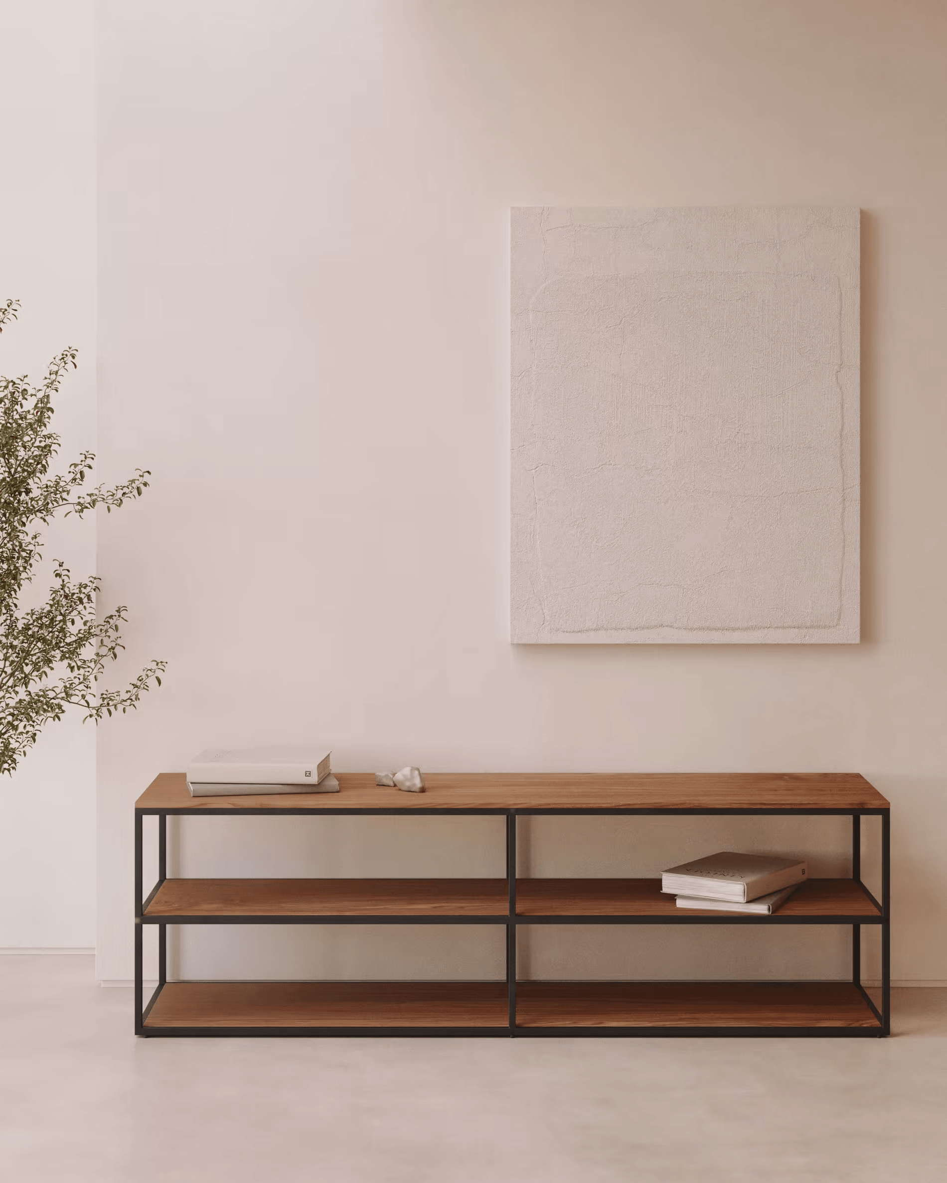 Szafka RTV YOANA fornir orzechowy z czarną podstawą La Forma    Eye on Design