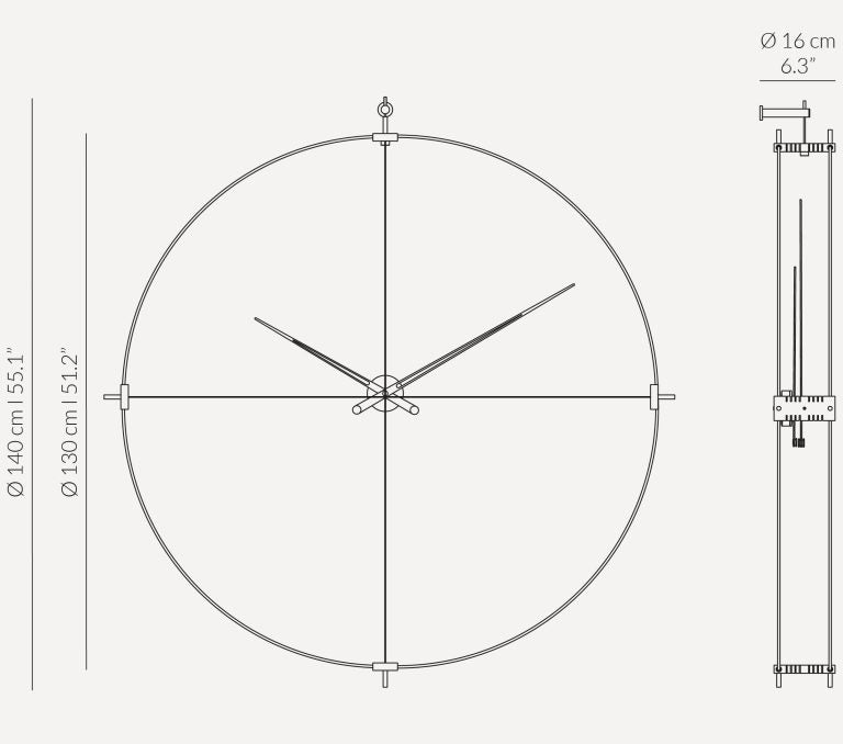 Wanduhr DELMORI aus Nussbaumholz mit Schwarz und Chrom