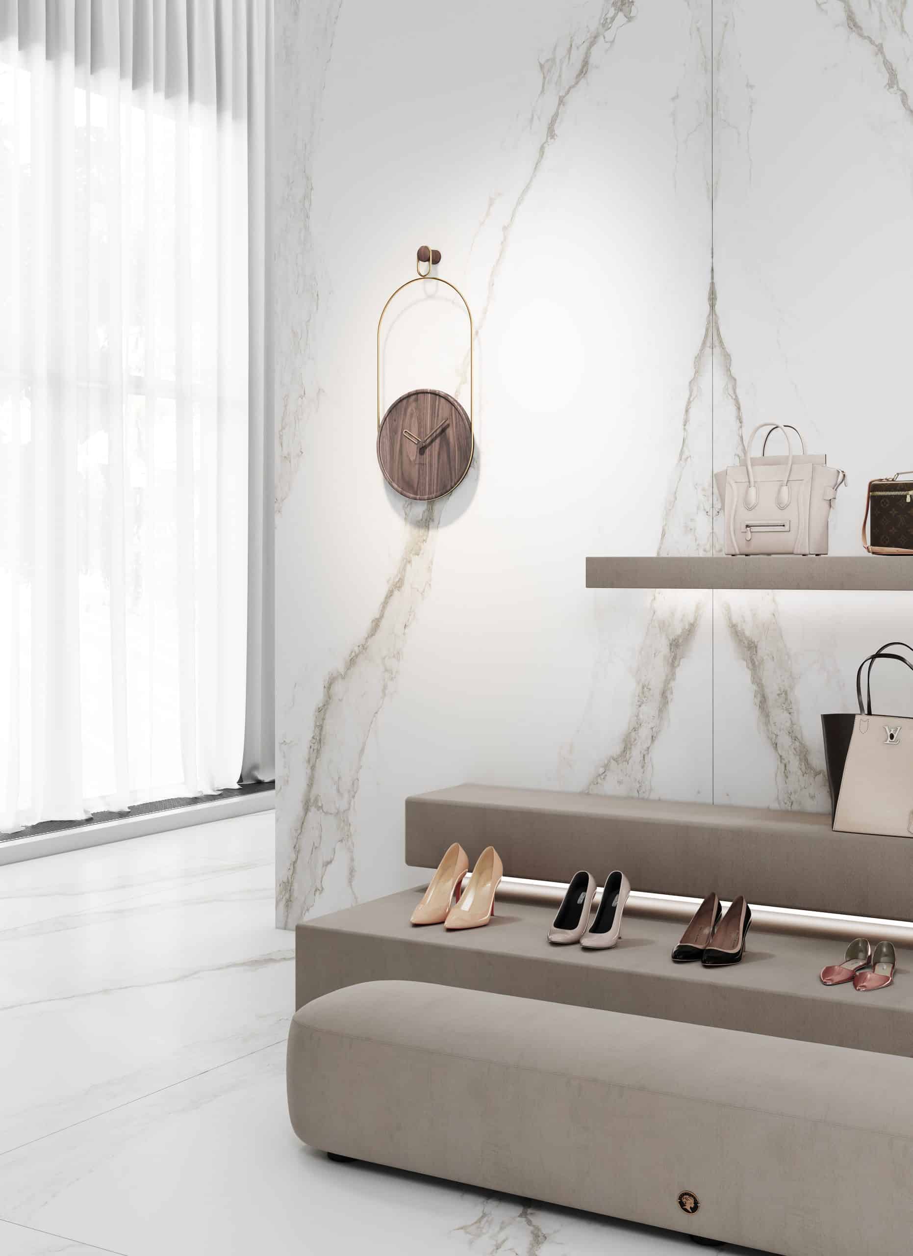 Wanduhr ESLABON aus Nussbaum mit Messing