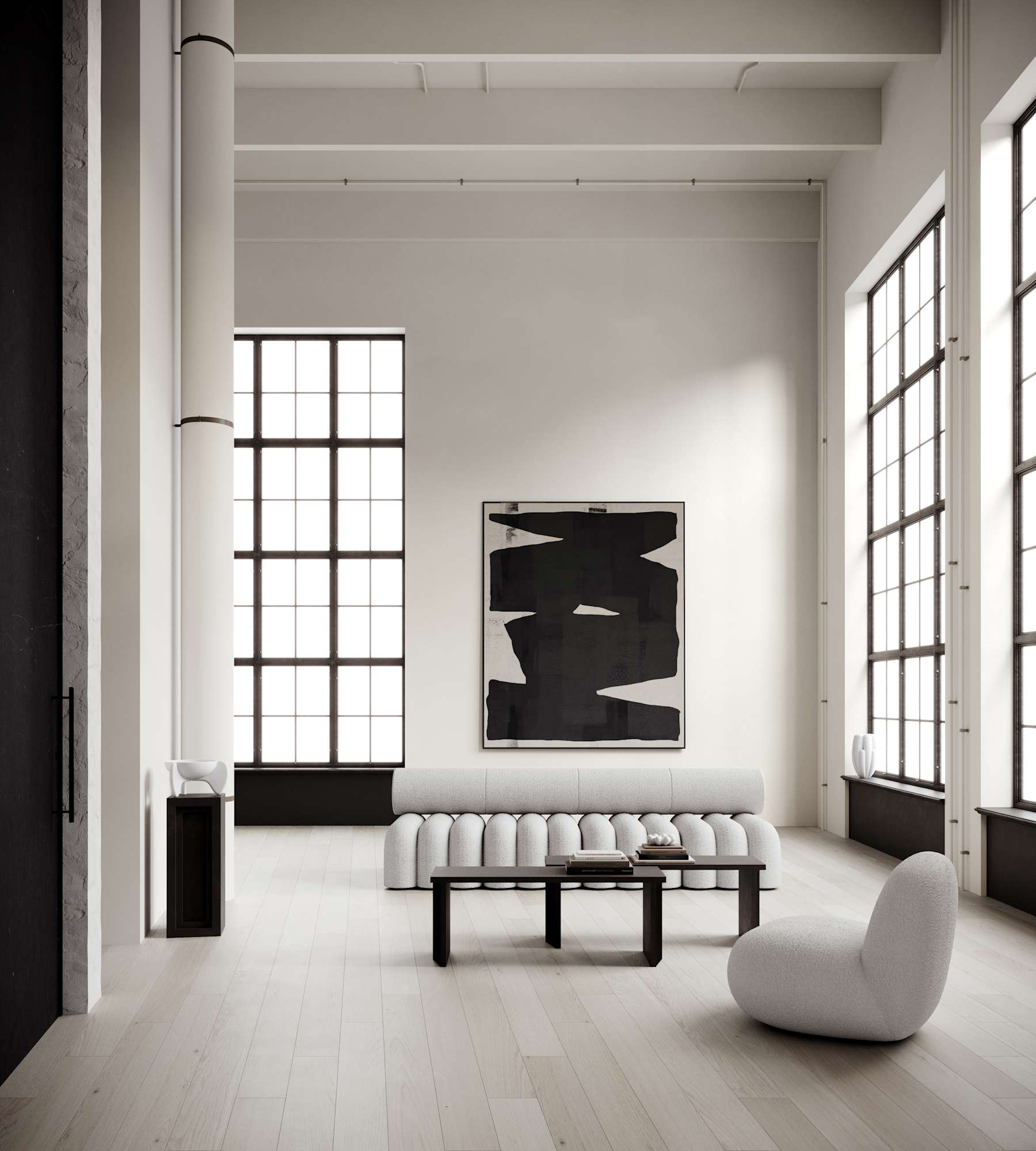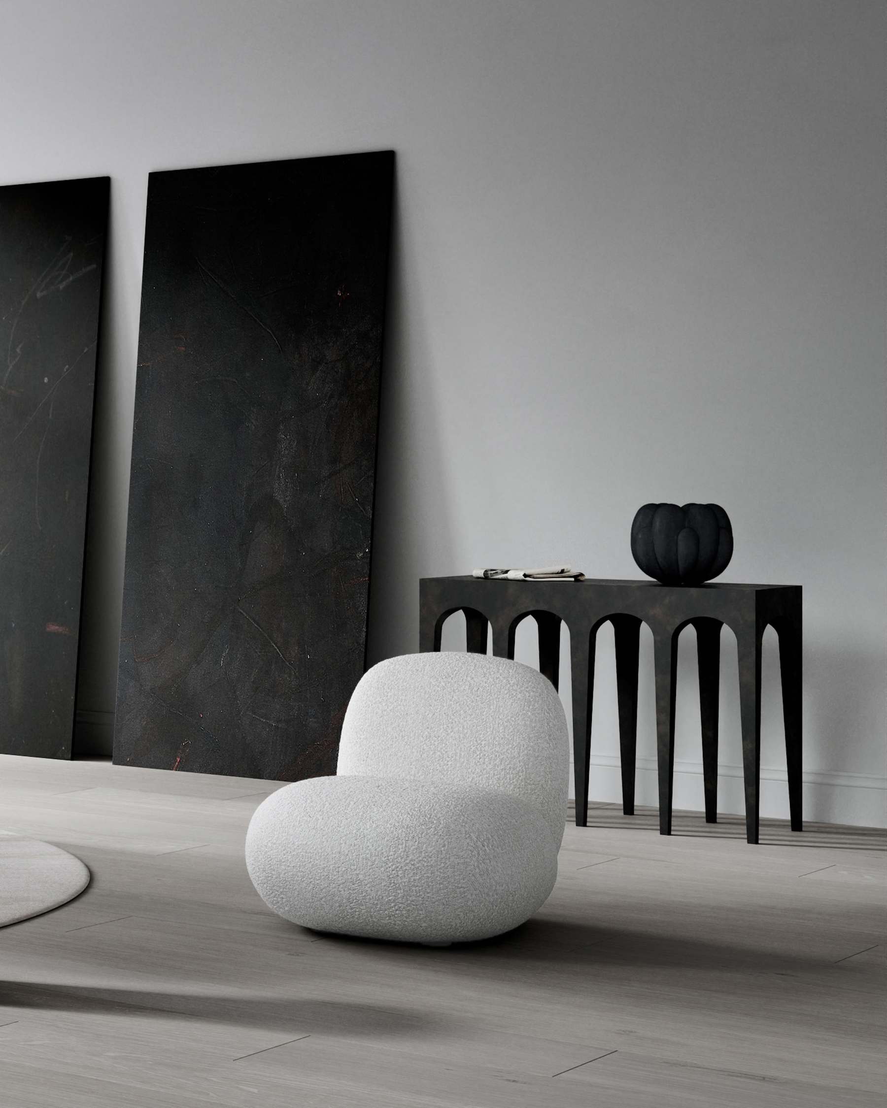 Toe Flat wurde für maximalen Komfort durch eine sorgfältig ausgewählte Kombination von Schaumstoffen mit unterschiedlichen Eigenschaften entwickelt. Die skulpturale Silhouette und die minimalistische Ästhetik machen den Sessel sowohl zu einem funktionalen Entspannungselement als auch zu einem auffälligen Akzent im Interieur.