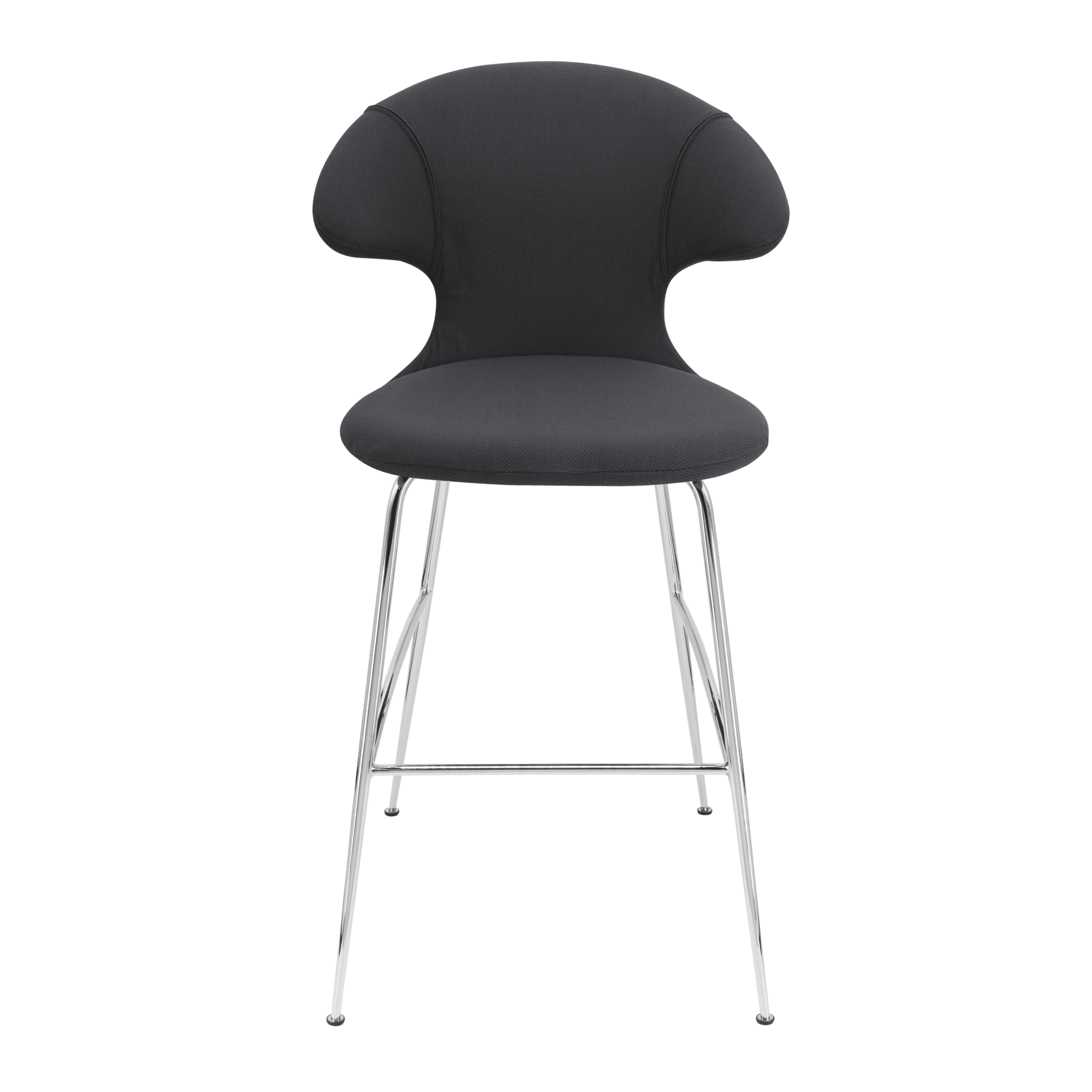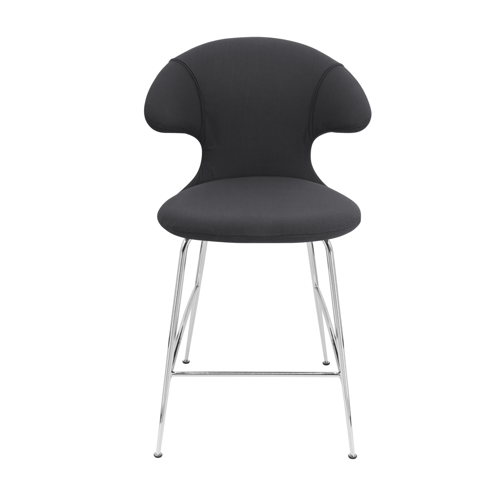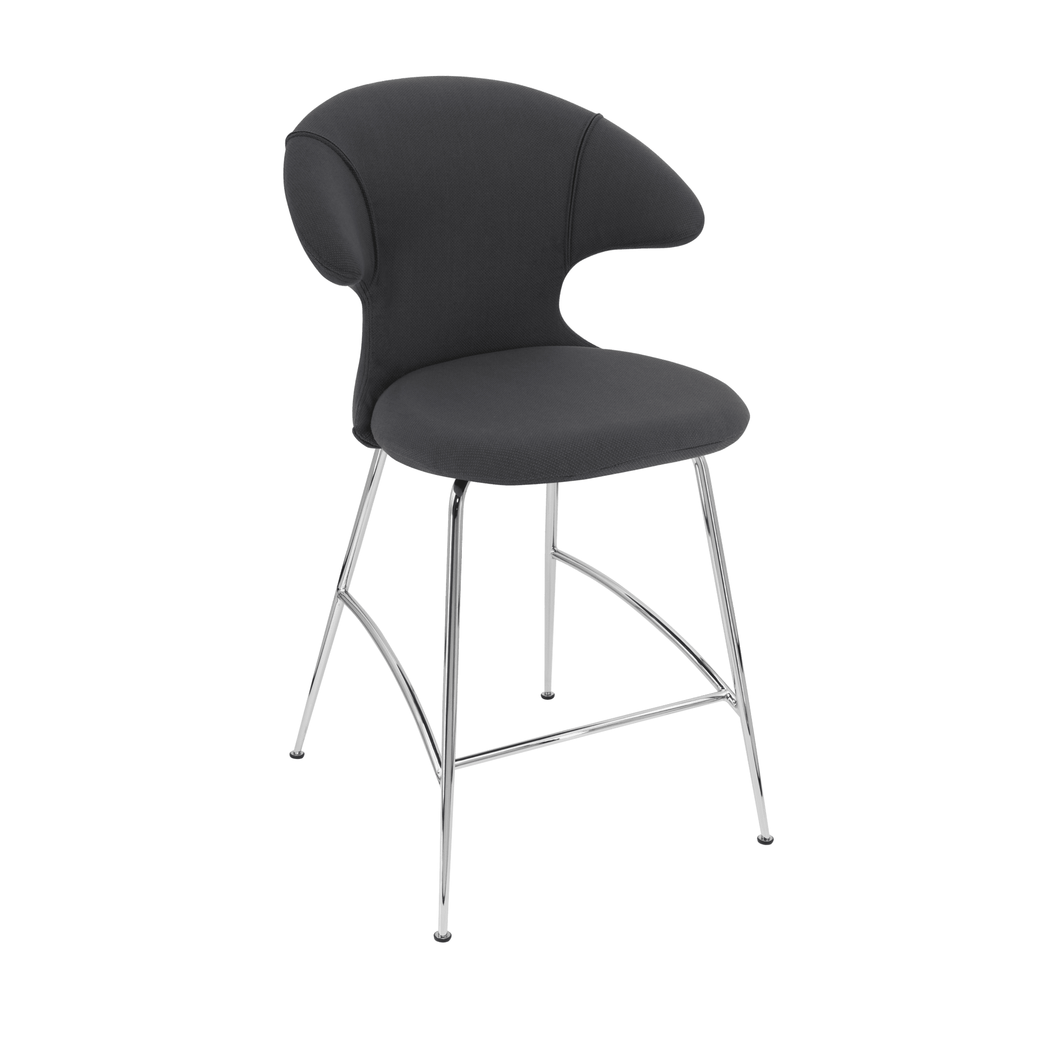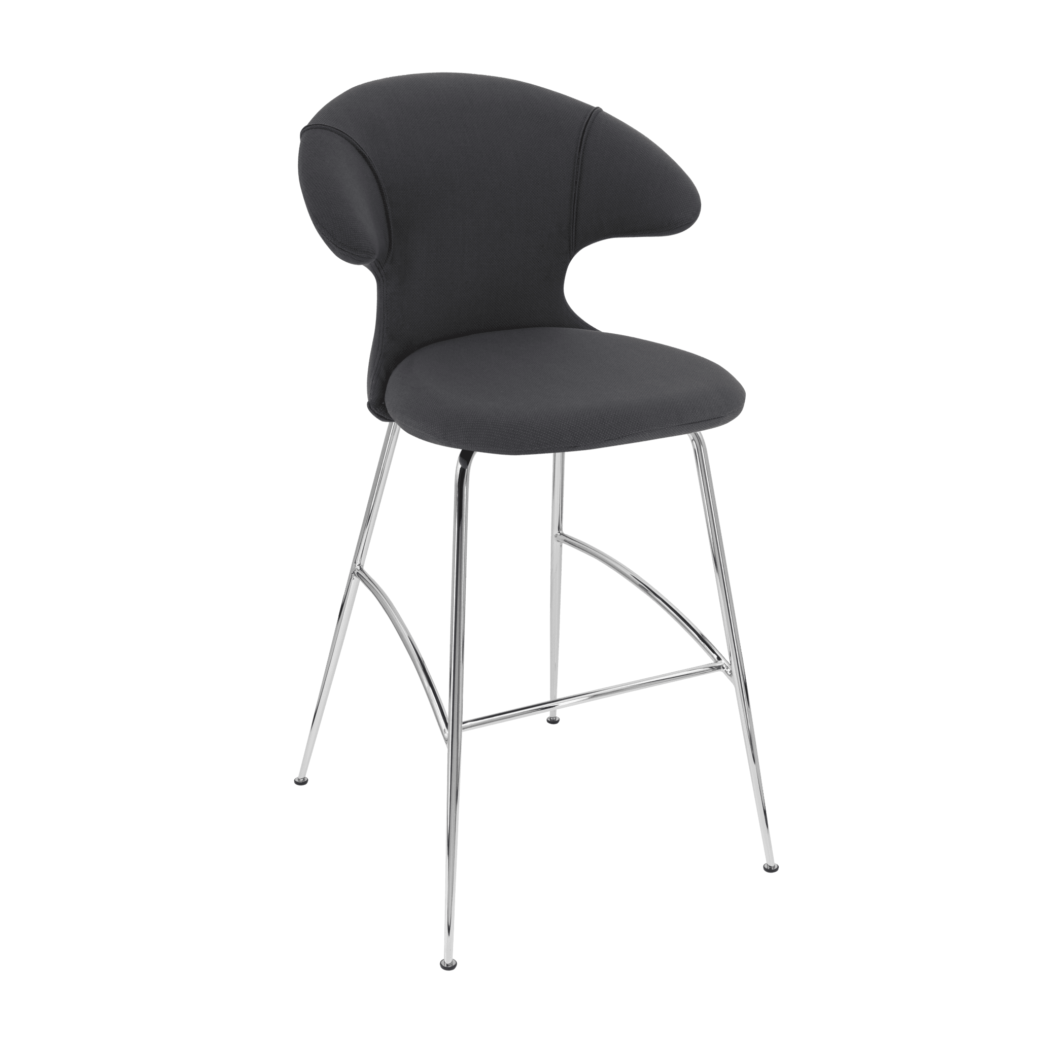 Zeit Anthracit Time Flyies Bar Stuhl mit einer silbernen Basis