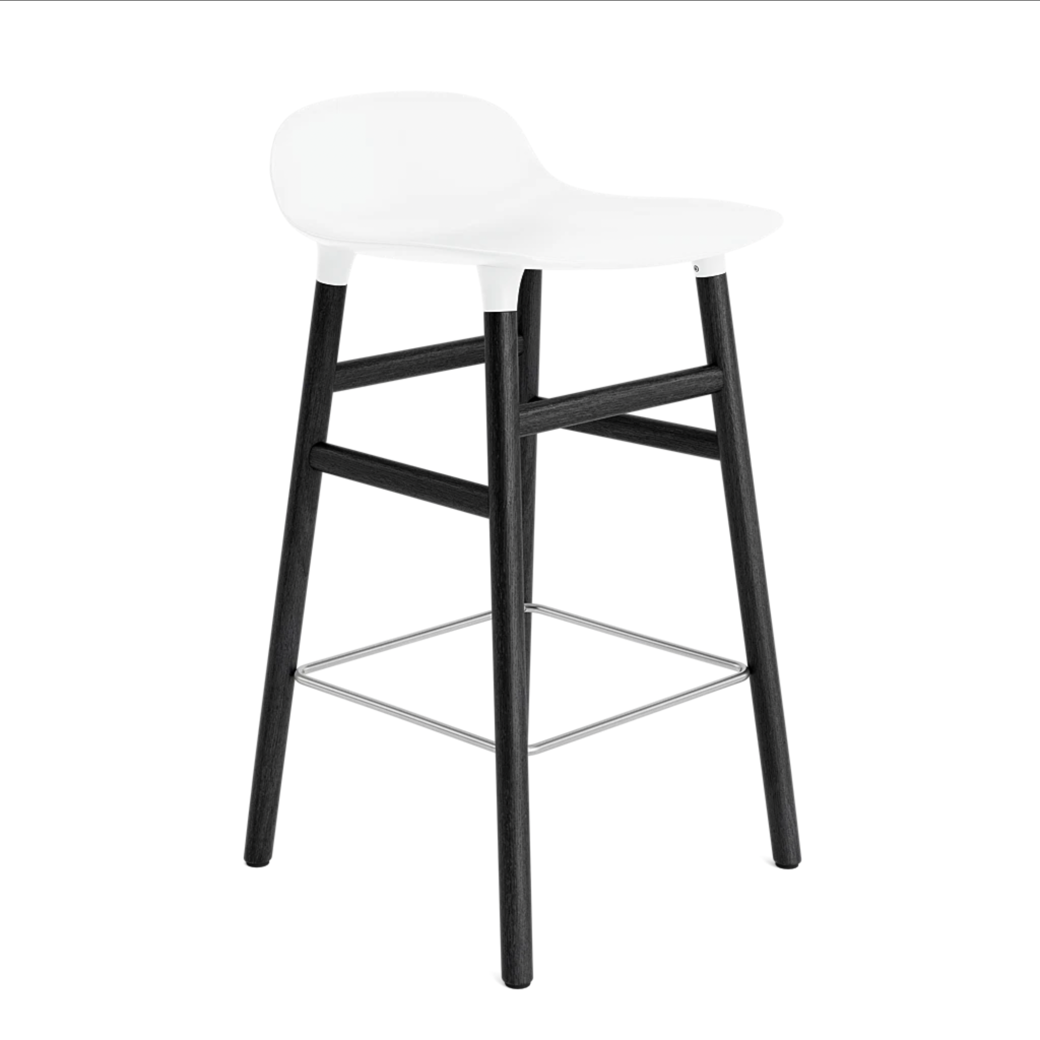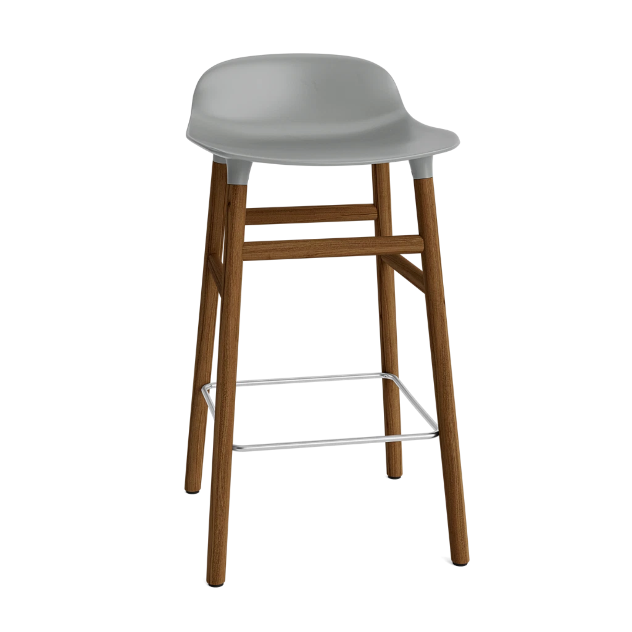 Hocker -Formen von hellgrau mit einer schwarzen Eichenbasis