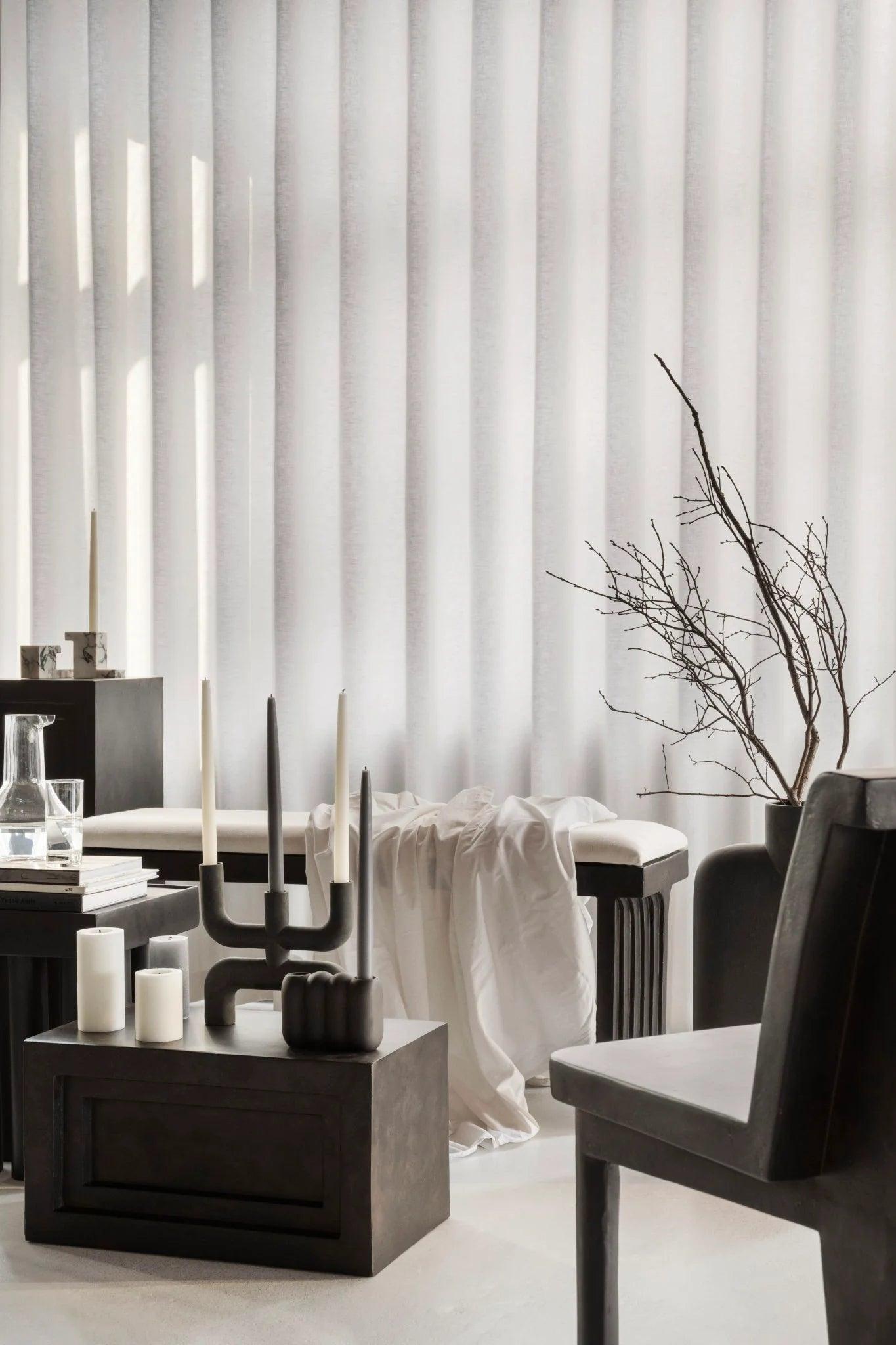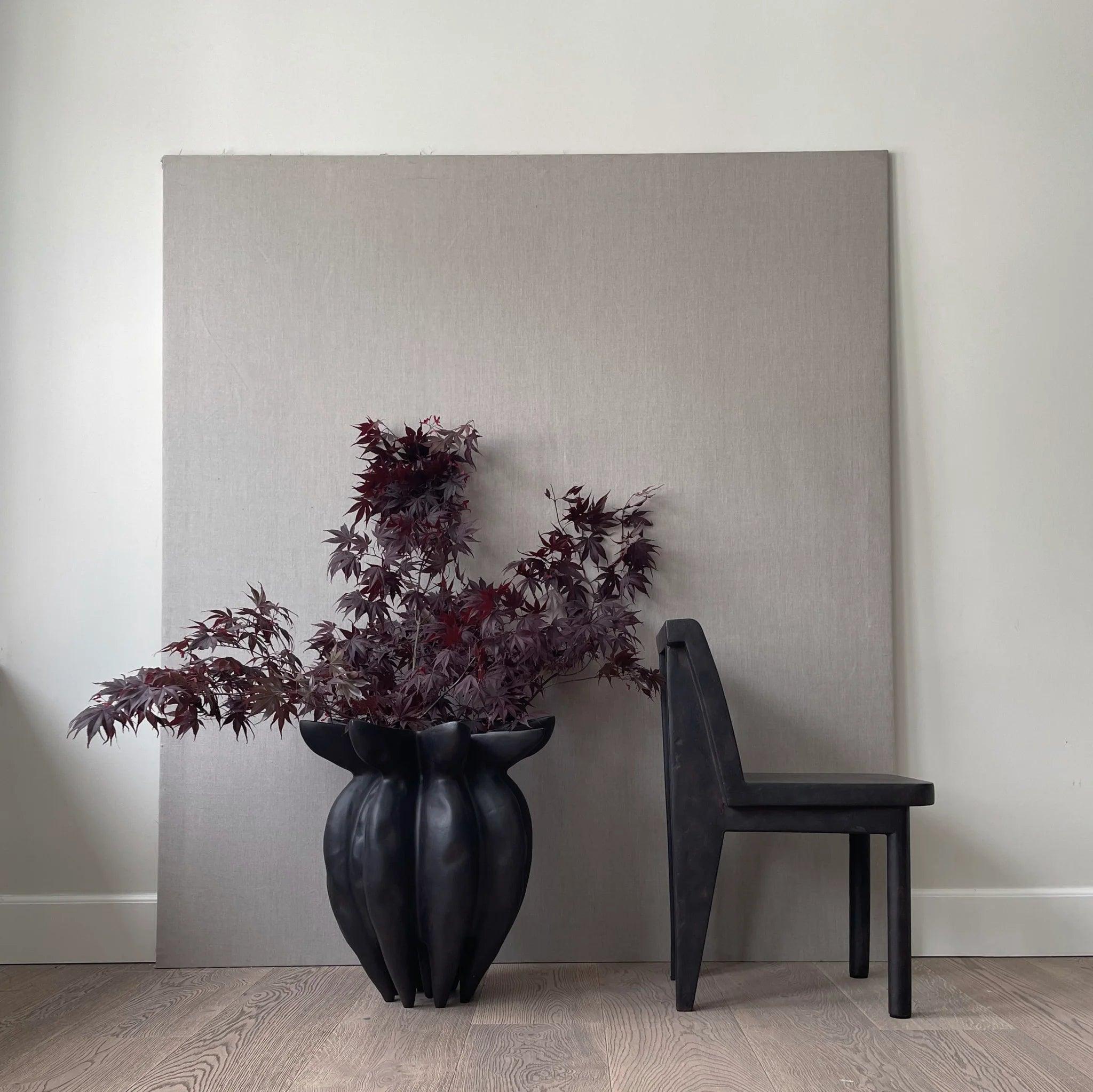 Referring to traditional Japanese wooden stools, a curved seat and characteristic crossed legs are an ideal additional place to sit around the table. Each element is hand -painted to create a textured, unique surface. By putting emphasis on a delicate balance between sharp architectural lines and a slightly milder curvature of the backrest and the armrest, the Brutus collection are expressive sculptural elements that ensure captivating the comfort of sitting.