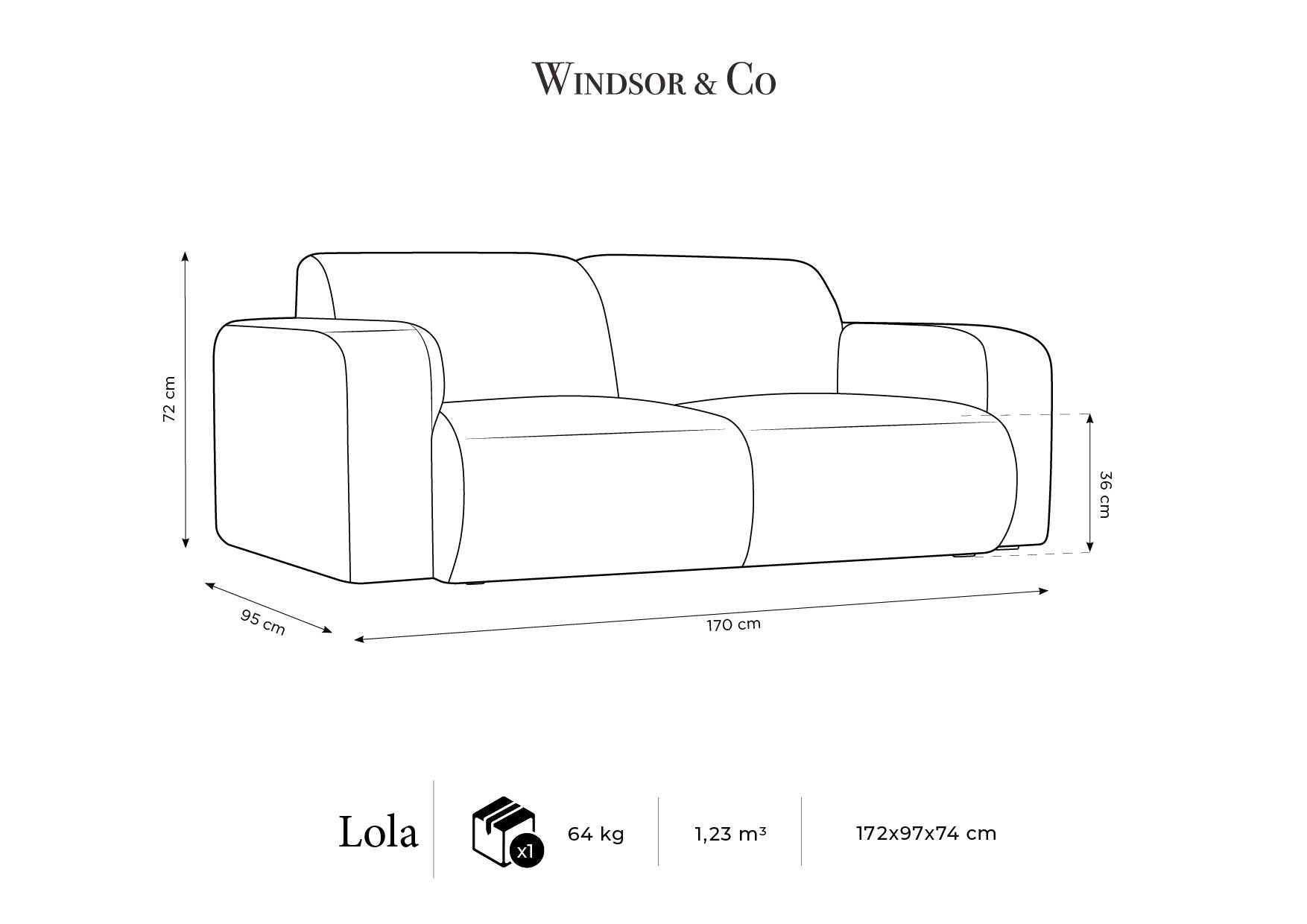 Thanks to its compact dimensions and two places to sit, the Lola sofa is perfect for smaller spaces, providing a pleasant place to relax. Her modern look and elegant line They make it an ideal addition to the living room, living room or even office.
