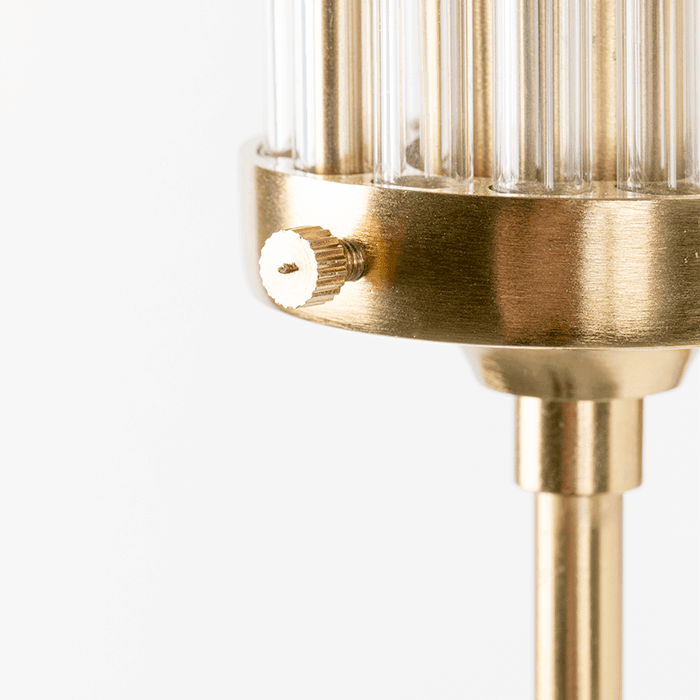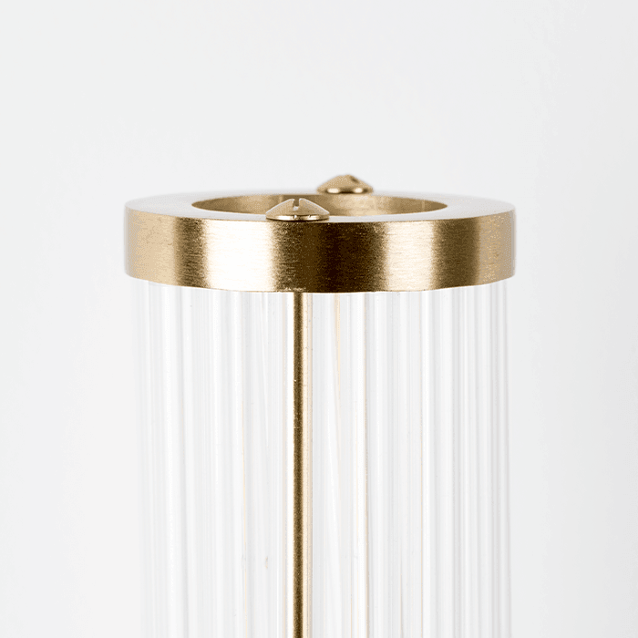 Acrylic tubes Inside the lampshade it is an interesting combination of a modern and minimalist style. They were supplemented with a brass finishing of the binding. The whole refers to the style Art Deco from the 1960s