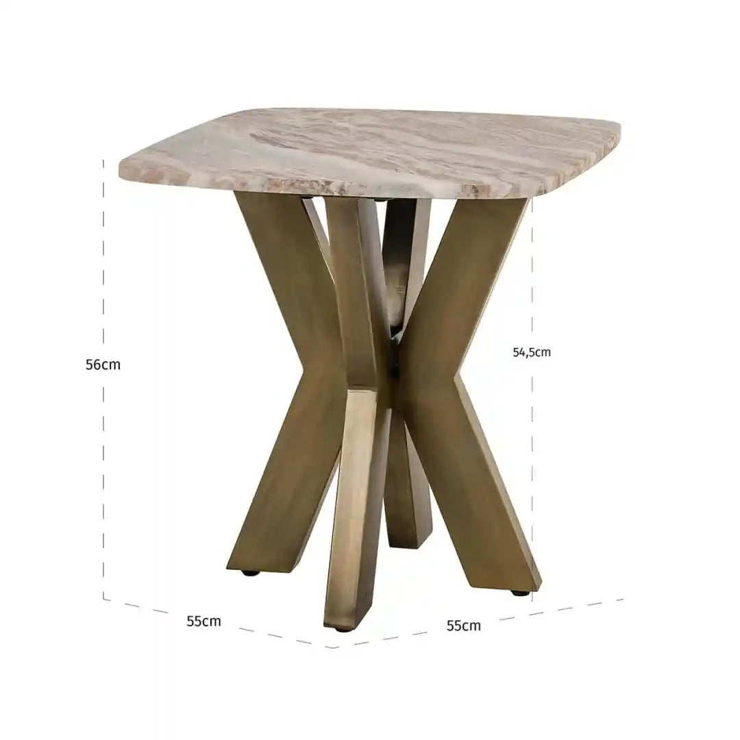 Side table Bottega is a refined combination of noble materials and sculptural form. The Toronto marble top, with its subtle pattern and delicate brown-gray tones, contrasts with the dynamic "X" shaped base made of brass and iron. The entire piece exudes elegance and modern class, making the table a perfect accent in the living room, bedroom, or hallway.