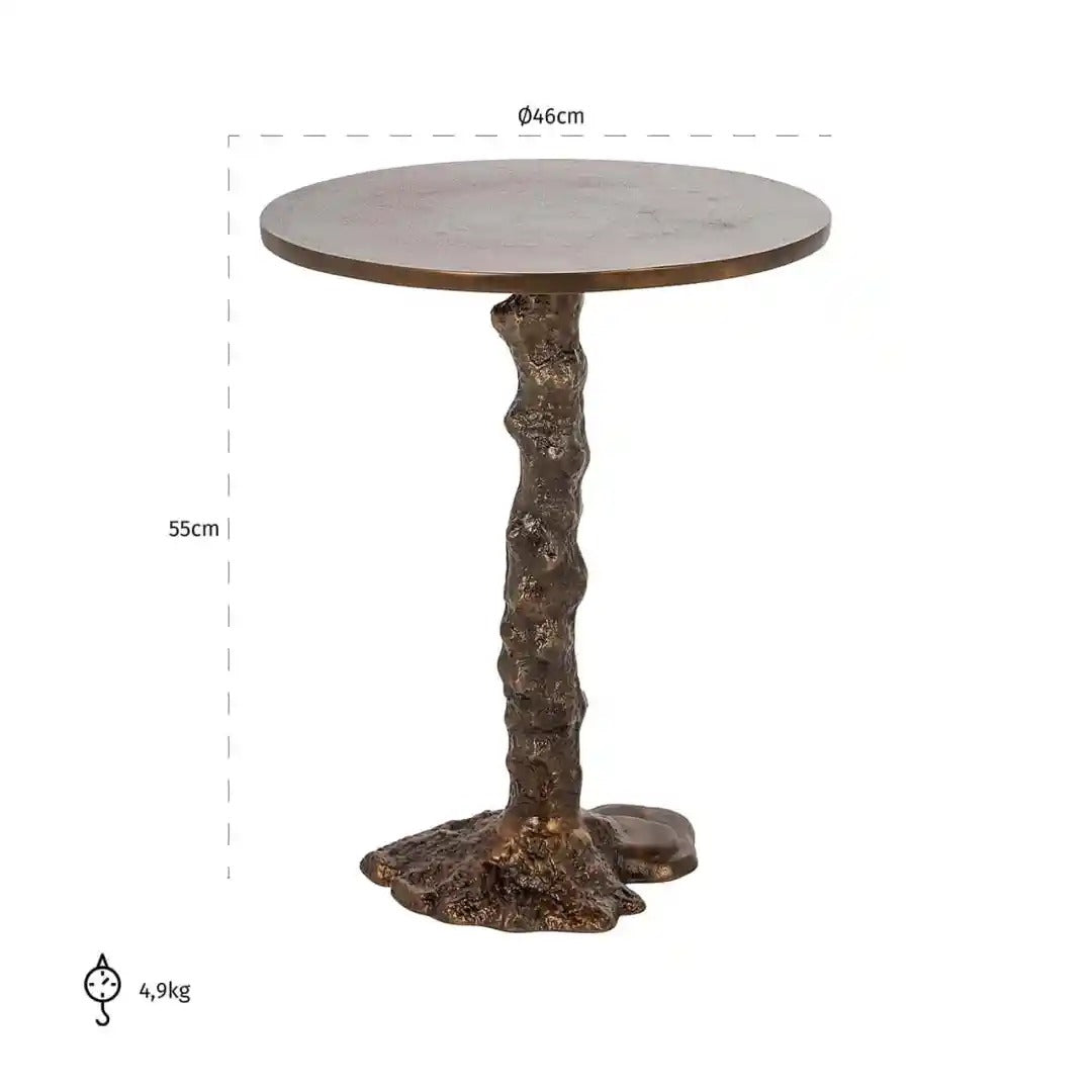 Elegant side table Misty with a unique base inspired by the natural form of a tree is an extraordinary decorative accent for any interior. The hand-finished structure gives it an artistic character, and the whole is maintained in a warm, metallic shade that beautifully complements modern, industrial, or eclectic arrangements.