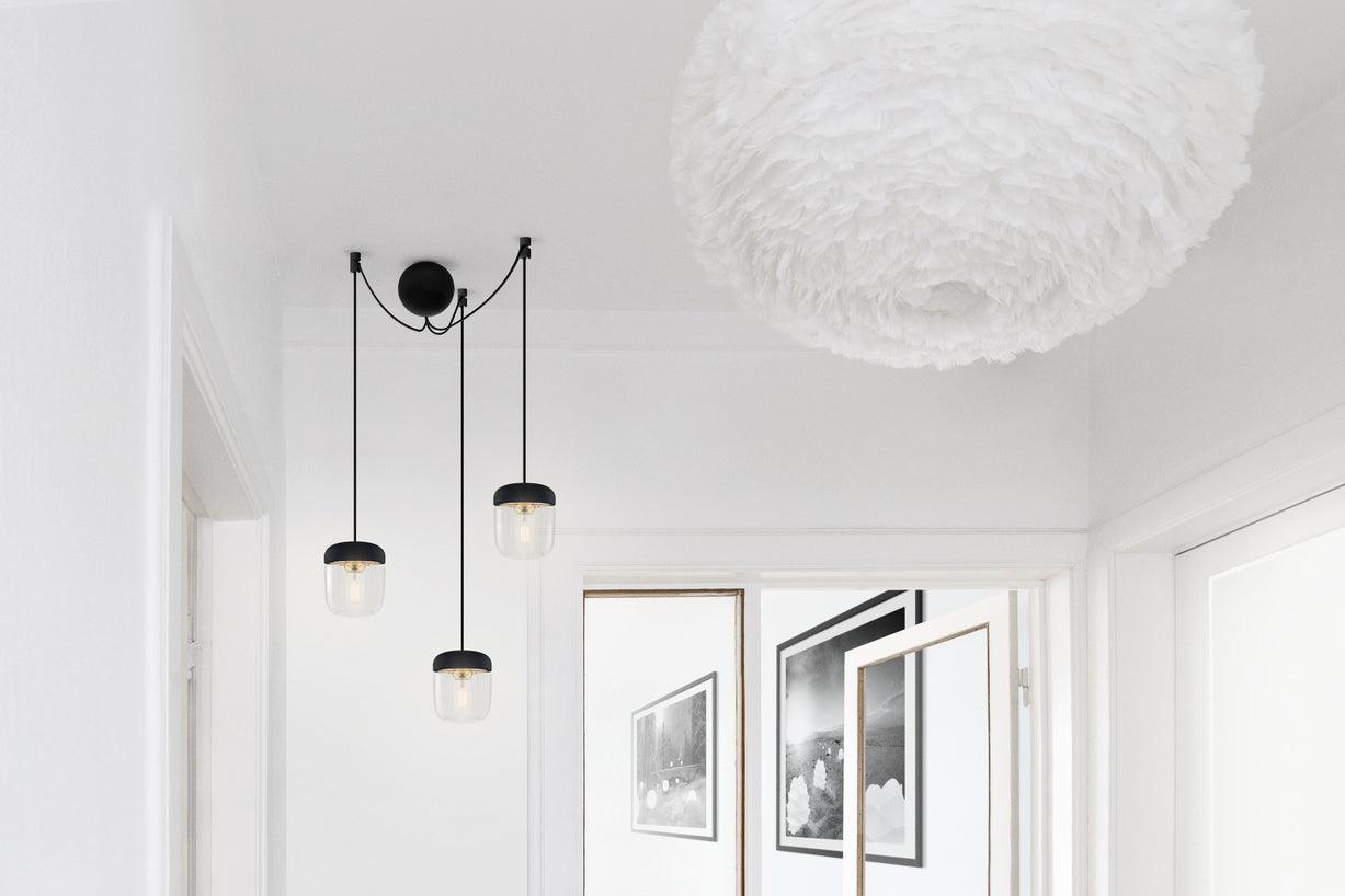 Fastening a hanging lamp Cannonball in black is a subtle element with an inspiring ball shape, created for creating a harmonious binding for the lamp. This delicate headliner, made of flexible silicone, looks elegant and natural. It allows you to adjust the suspension length and discreetly hides excess wires inside its structure, while maintaining aesthetics.