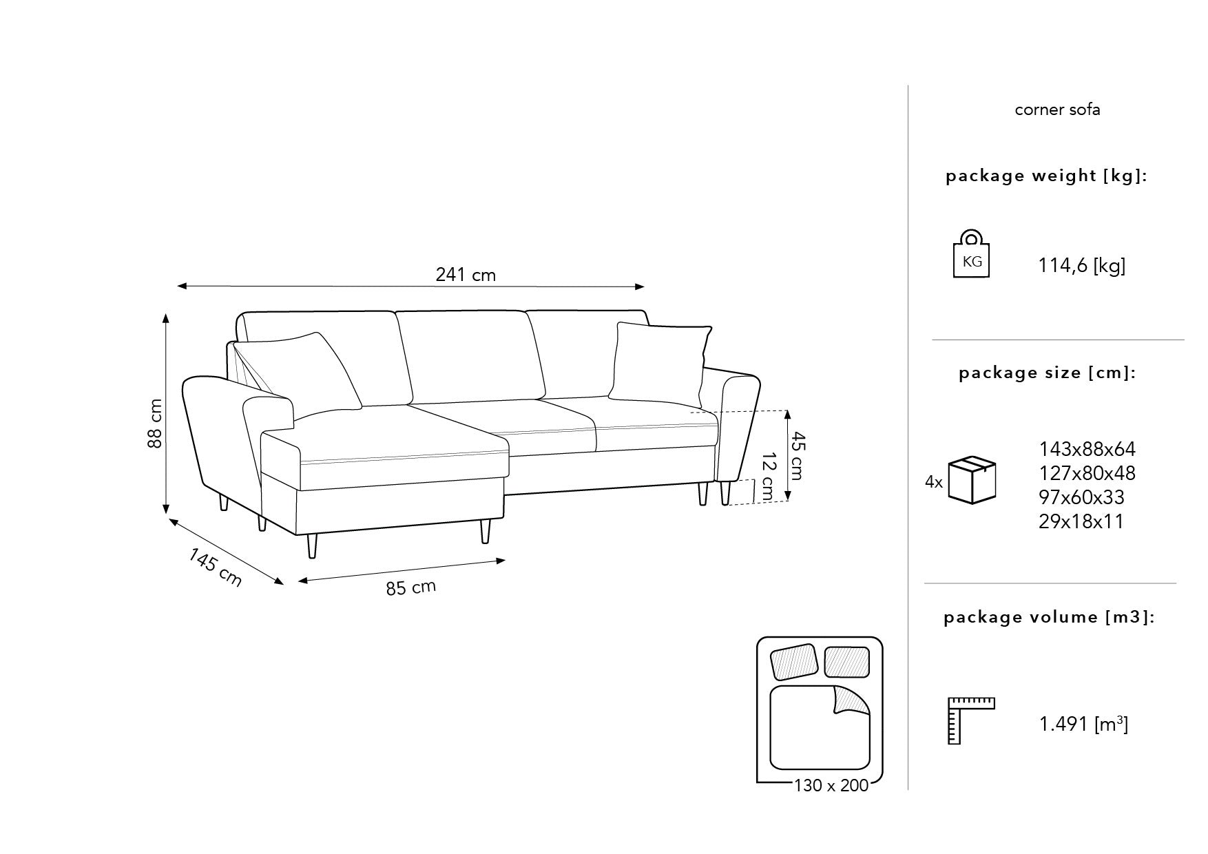 Velvet left -sided corner with a Kyoto Beige sleeping function with a black base