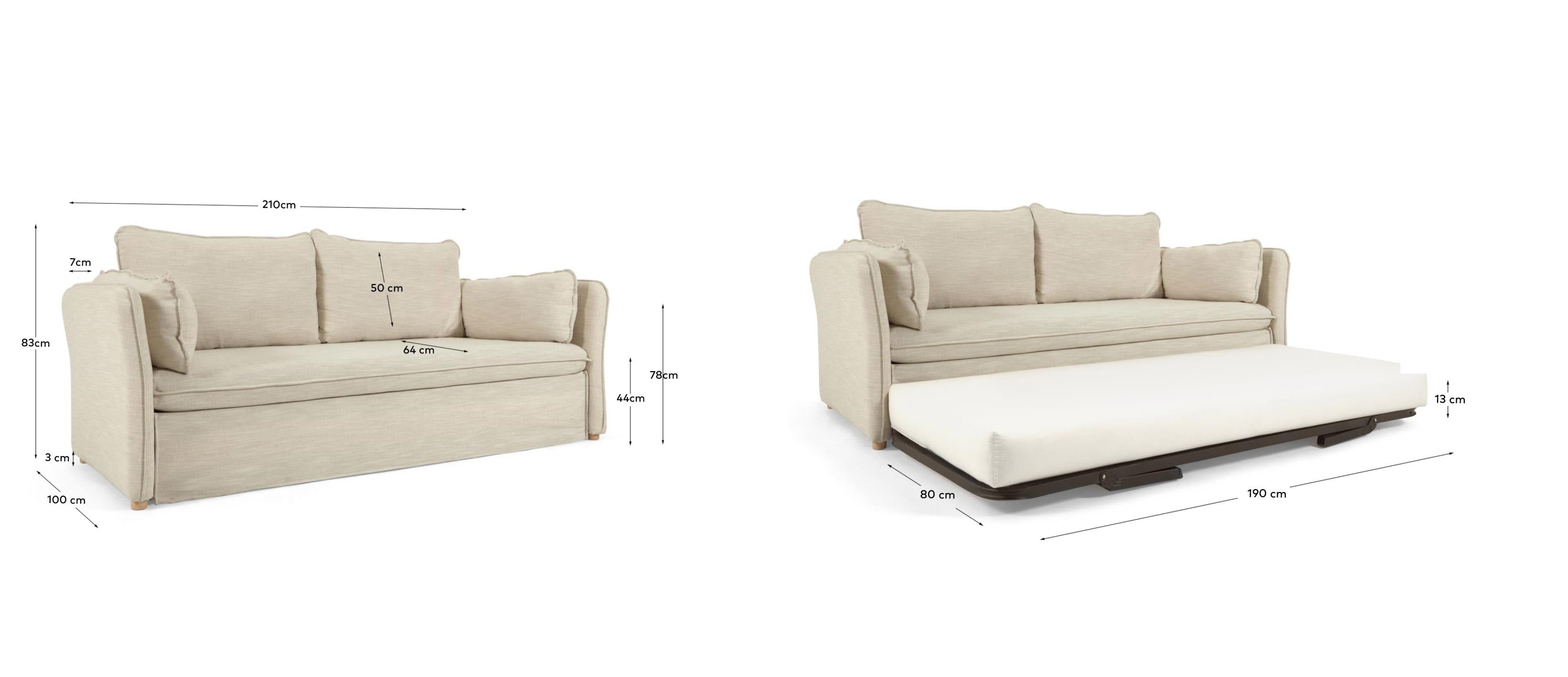 Sofa with sleeping function Tanit is not only a place to sit or sleep, it is also a dream of a comfortable and stylish interior. Thanks to the linen upholstery, every touch with her is a moment of pure pleasure, and the exclusive design created by the talented Kave Home team adds a unique character to the sofa.