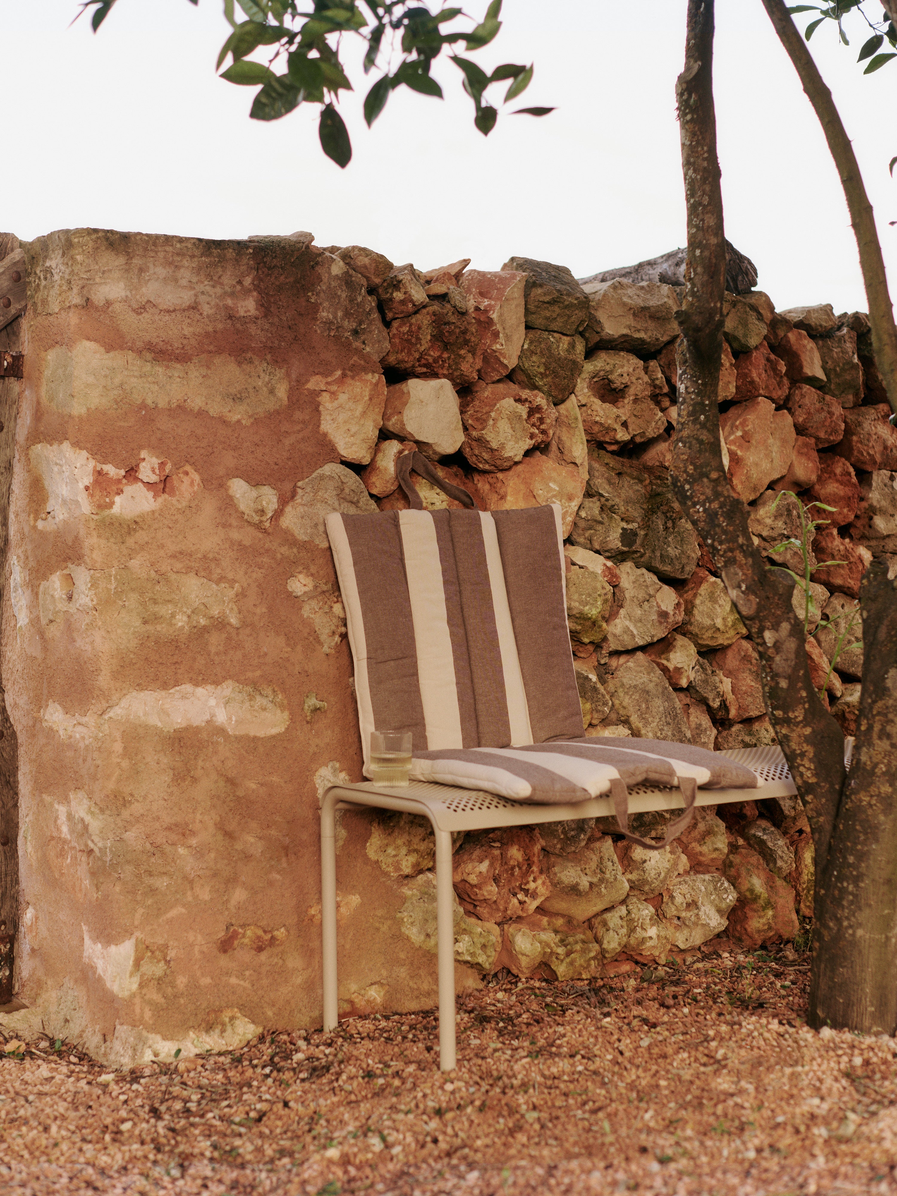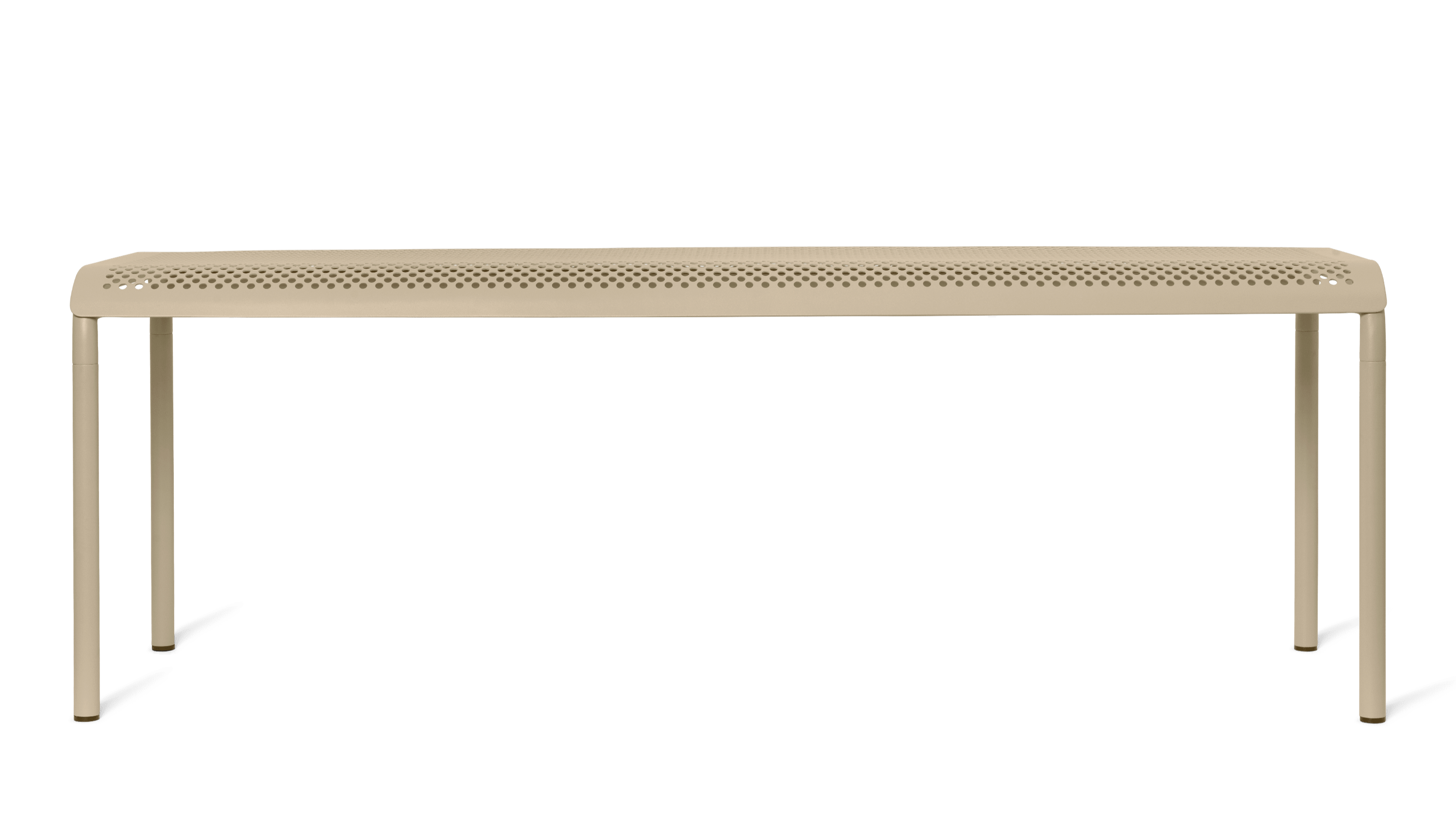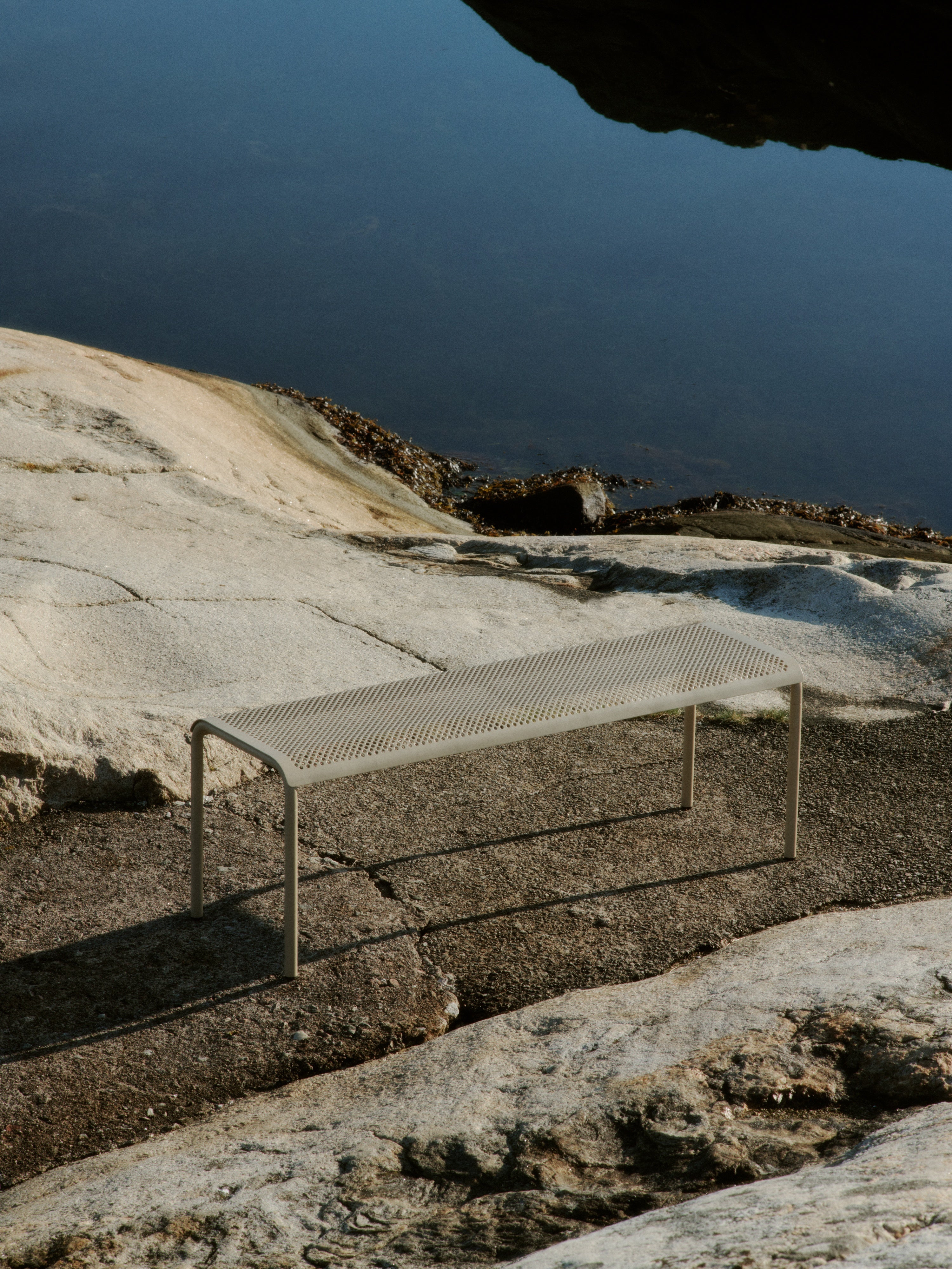 Bench Dapple draws inspiration from the gentle light filtering through leaves – its airy structure and subtle perforation bring tranquility and a natural rhythm to the space. Made of galvanized steel and powder-coated, it is perfect for the terrace, balcony, or garden, offering durability and resistance to weather conditions.