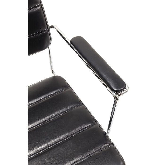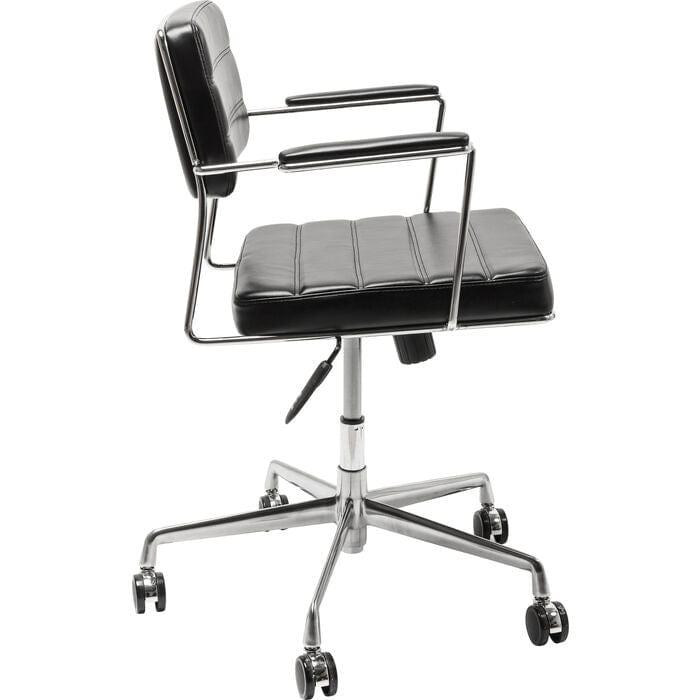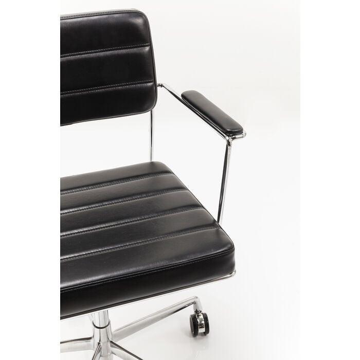 A comfortable seat, armrests and background with a black eco -leather. Decorative seams in combination with a metal base give the whole a unique character. 360 -degree rotation function and practical wheels will make you love it office chair Not only for an unusual appearance, but also for functionality.