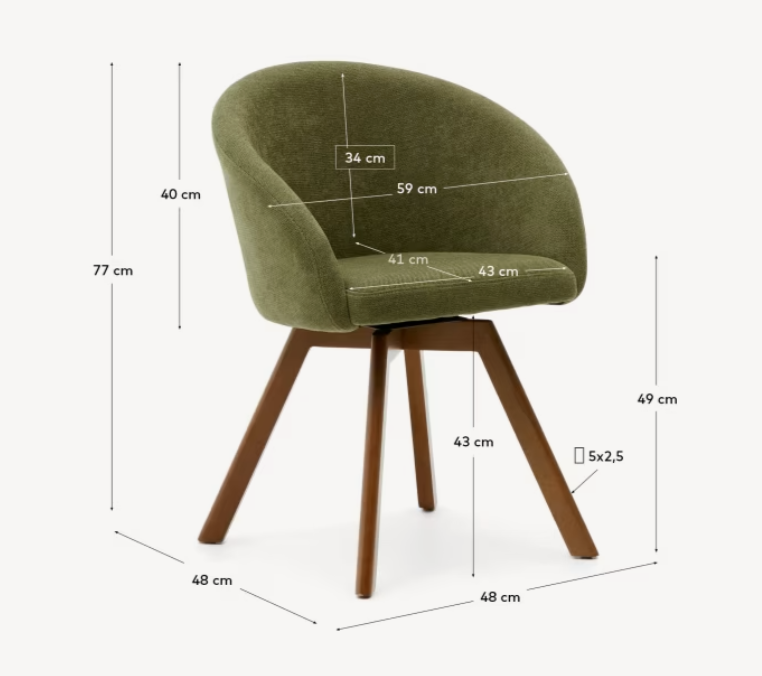 Krzesło obrotowe MARVIN zielony szenil z orzechową podstawą La Forma    Eye on Design