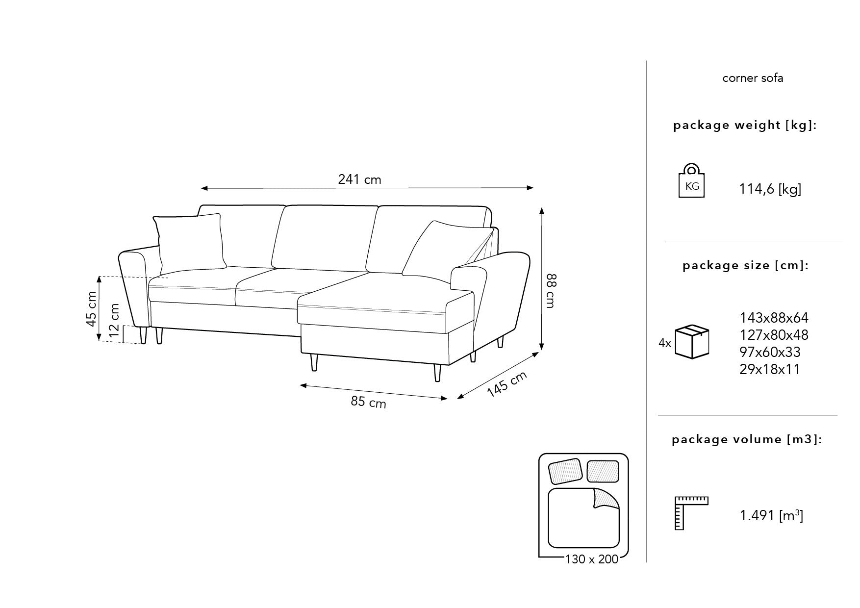 Right -sided velvet corner with Kyoto Beige sleeping function with a golden base