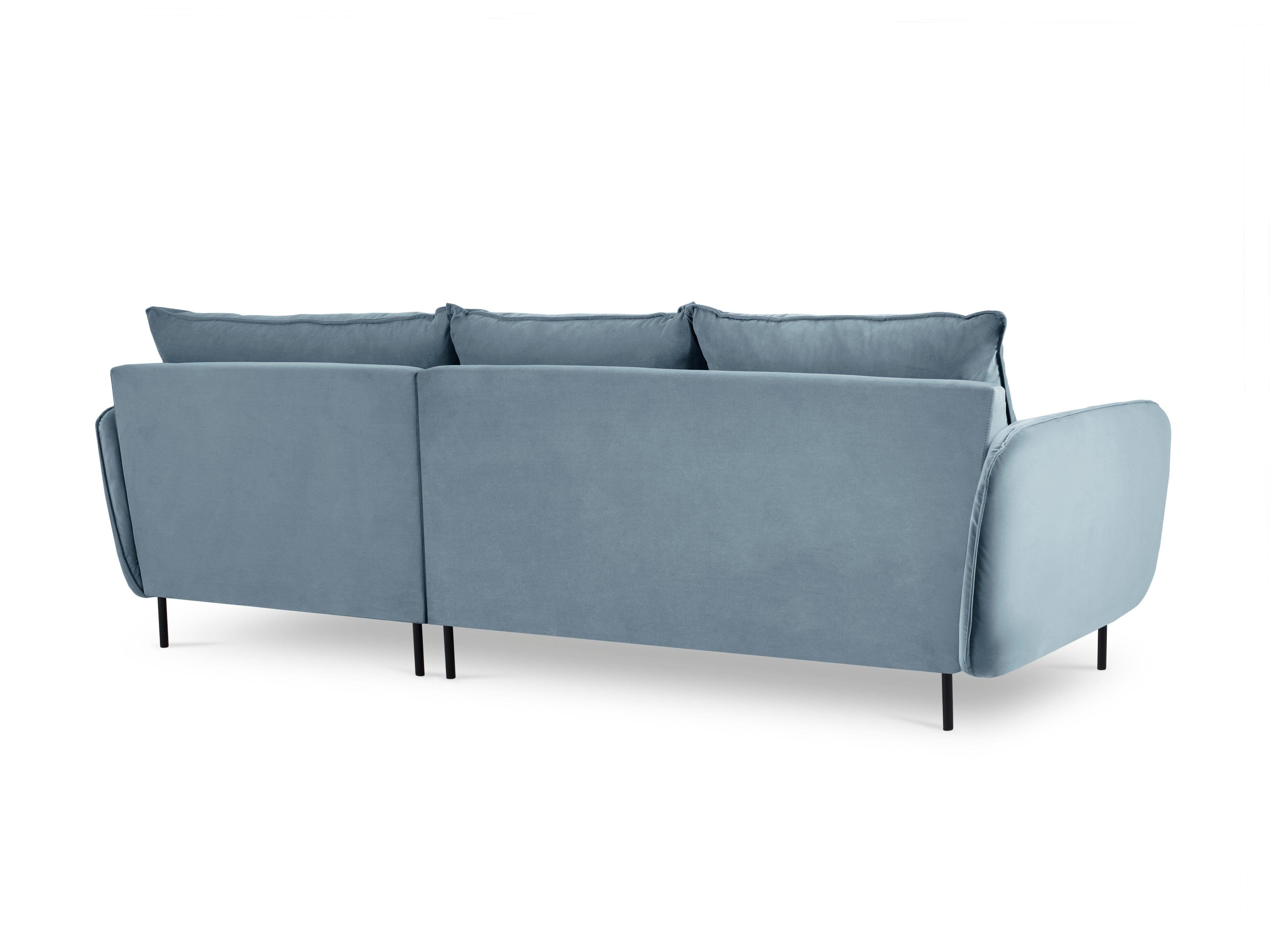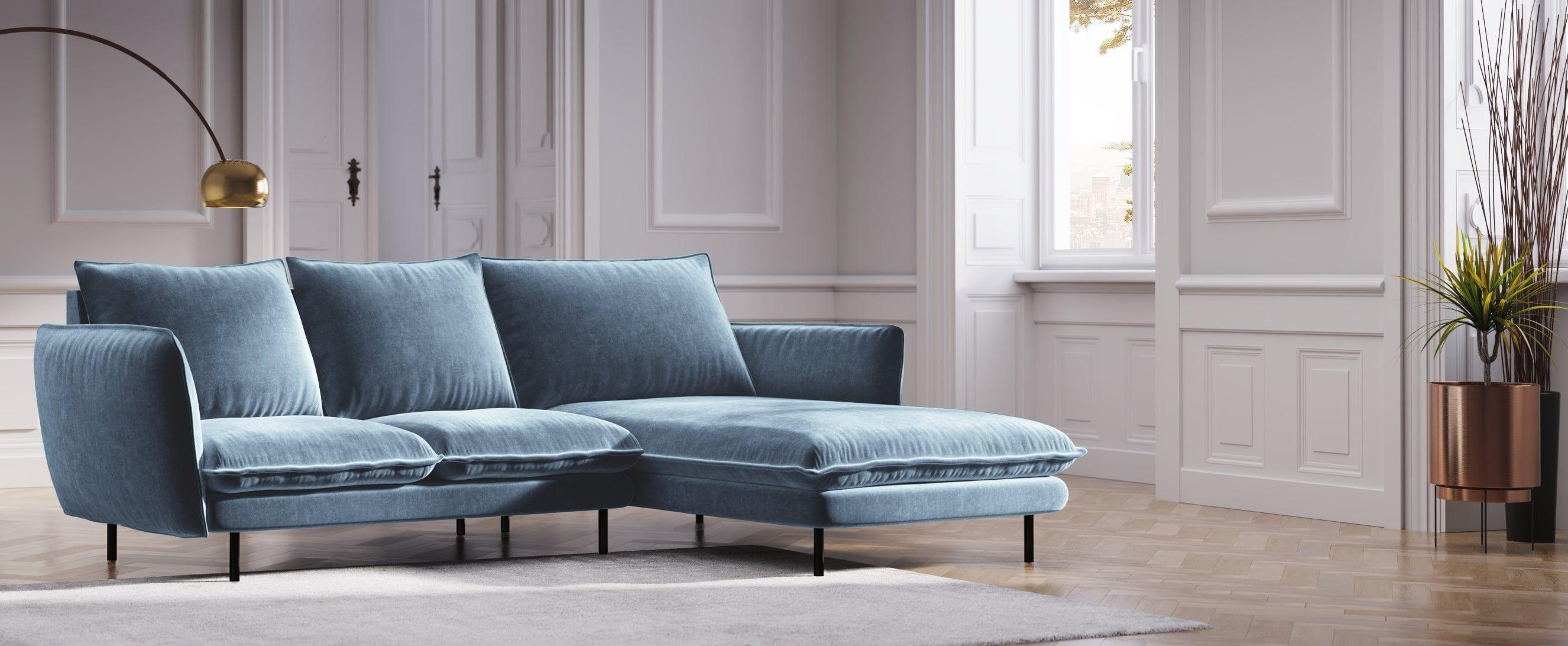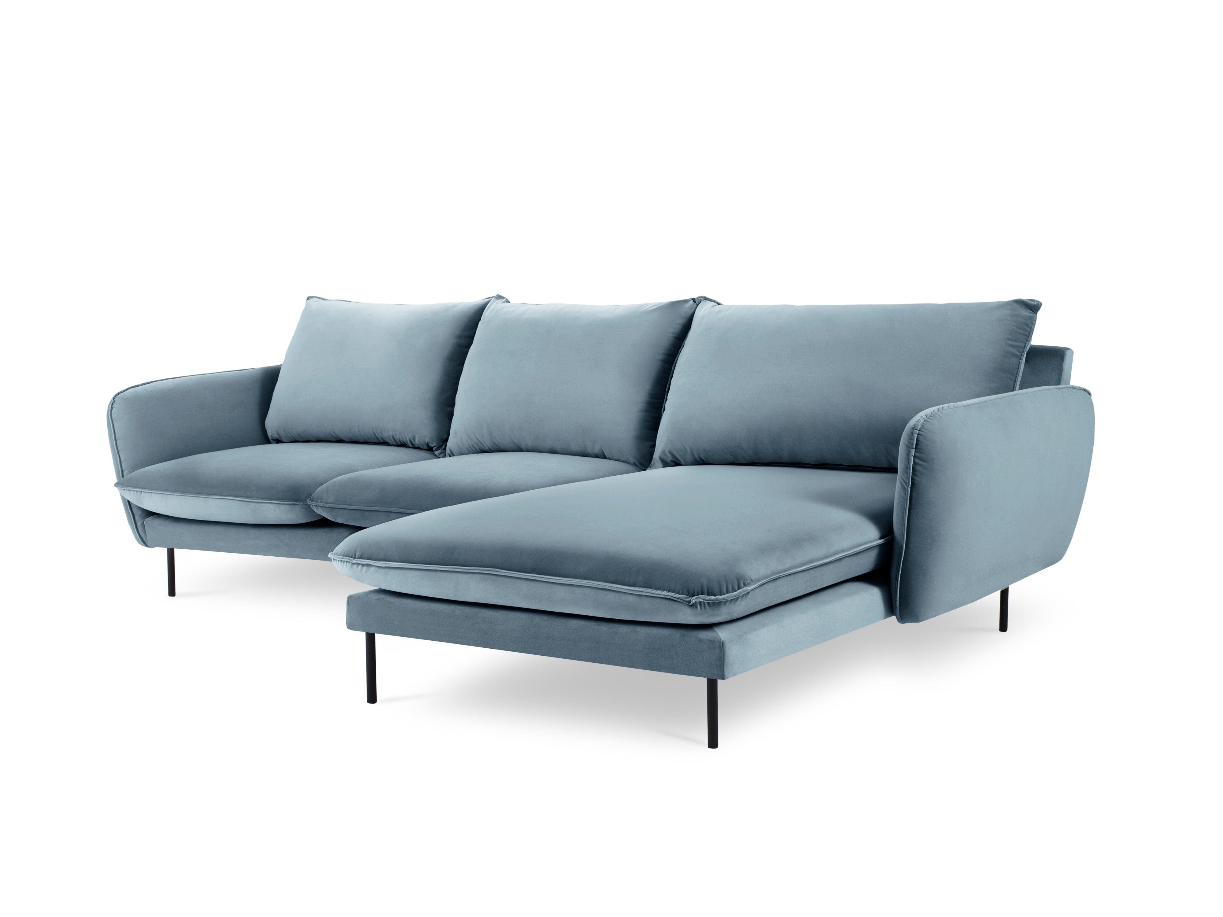 Narożnik aksamitny prawostronny VIENNA jasnoniebieski z czarną podstawą Cosmopolitan Design    Eye on Design