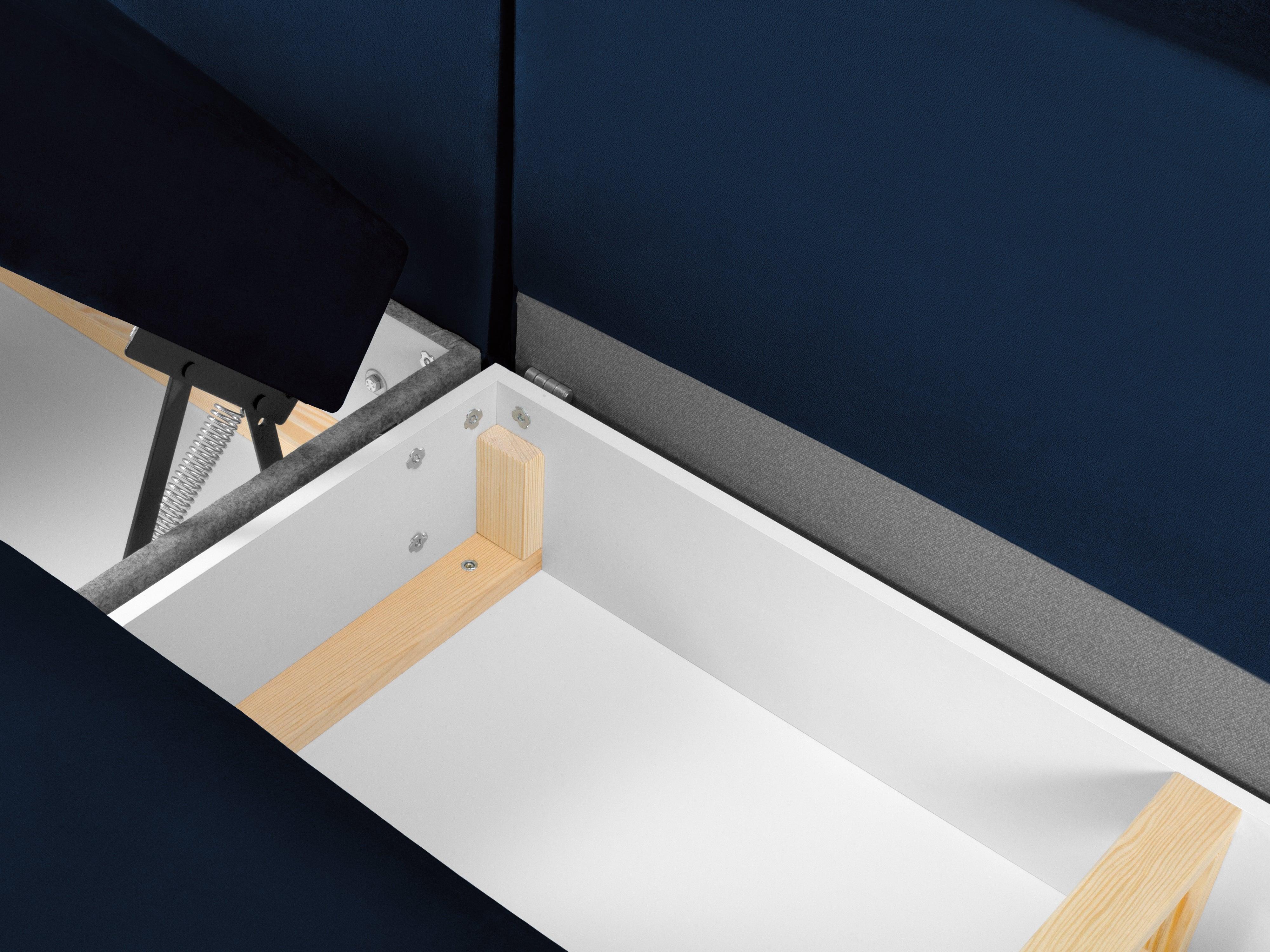 Right -sided corner velvet panoramic with a Kyoto Blue sleeping function with a golden base