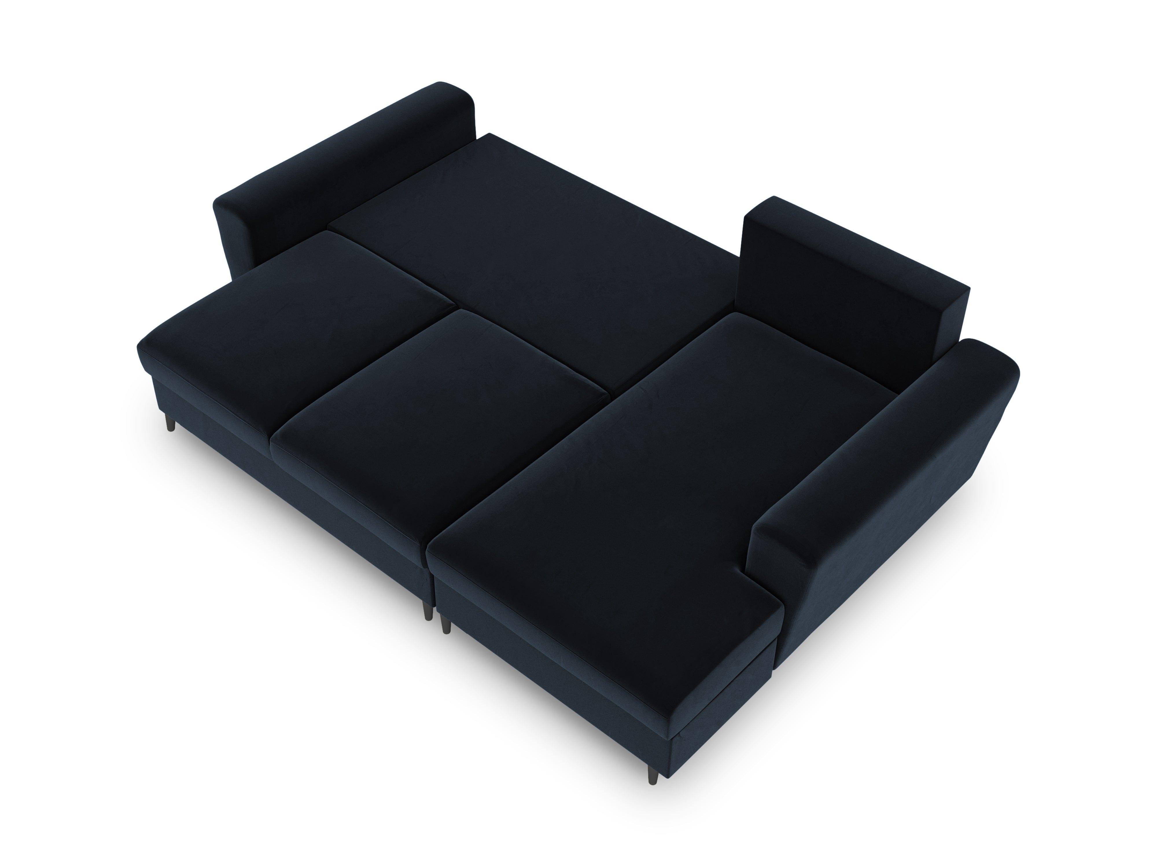 Right -sided velvet corner with sleeping function dark blue with a black base
