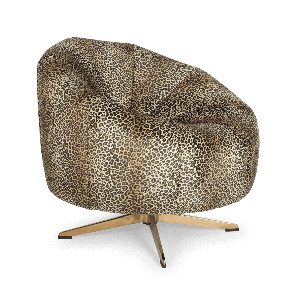 Here Designer armchair For the brave! Velvet upholstery in combination with predatory print in leopard He creates an extravagant project that will not sit quietly in the corner. The golden base adds elegance and balances the wide seat. The whole looks extremely original and stylish.