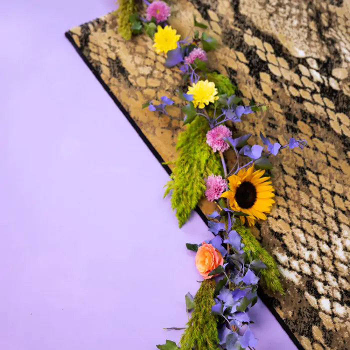 KEEP YOUR ENEMIES CLOSER rug in brown snake print