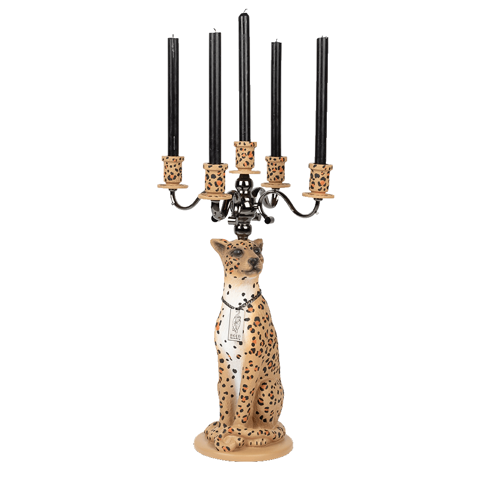 If you love cats like us, this charming leopard will steal your heart! Candlestick With a base in the shape of a large murmur, it was decorated with a golden chain, which elegantly stands out from the black body. Proud leopard in a crown with a five -pointed candlestick This is an ideal addition to every lover of brave and eclectic interiors.