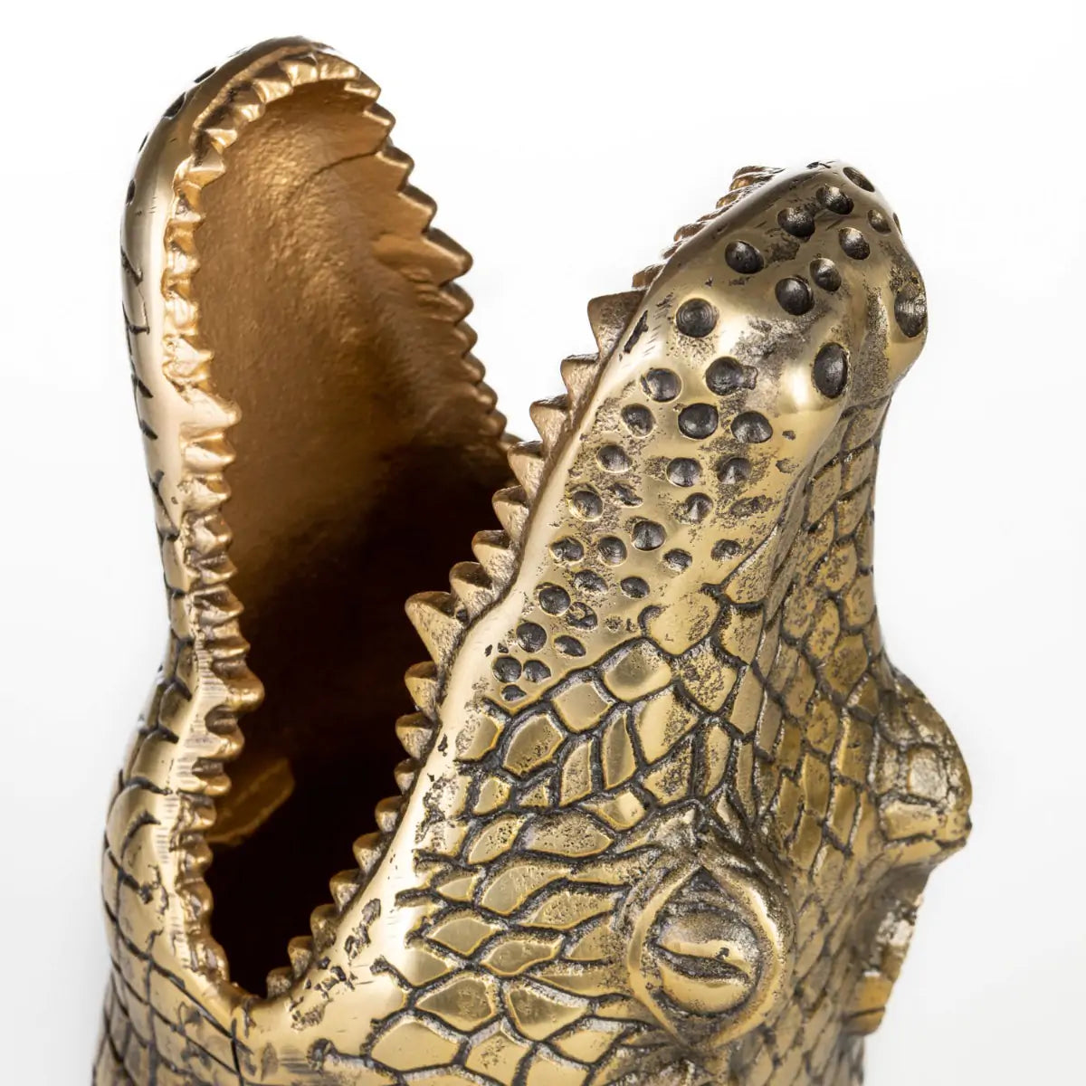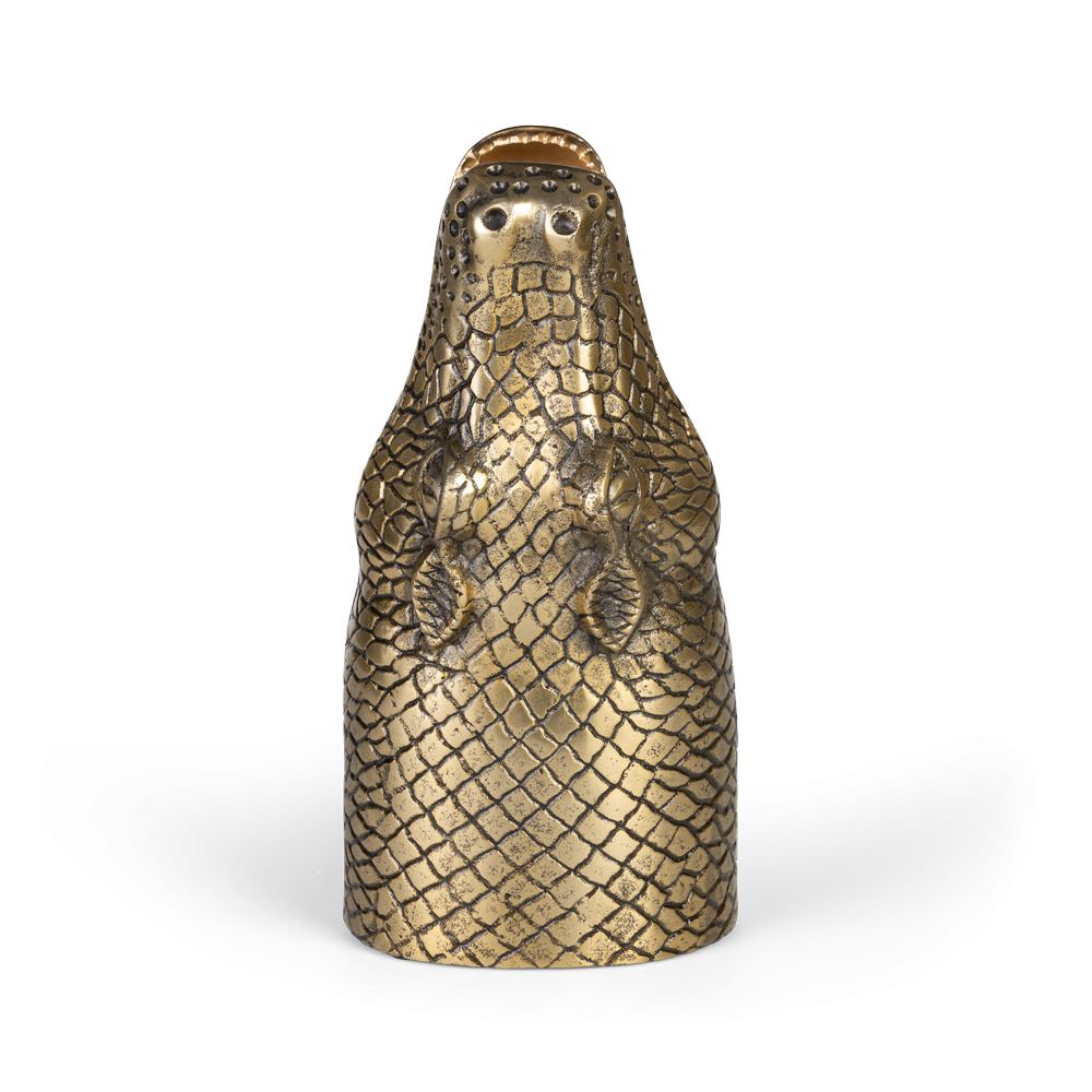 Vase See You Later Alligator by Bold Monkey is a characterful decoration that combines extravagant design with a touch of humor. Inspired by the art deco aesthetic, it delights with a shape reminiscent of an alligator and a gold finish. This is a proposal for those who want to add a fierce accent to their interior without sacrificing elegance.